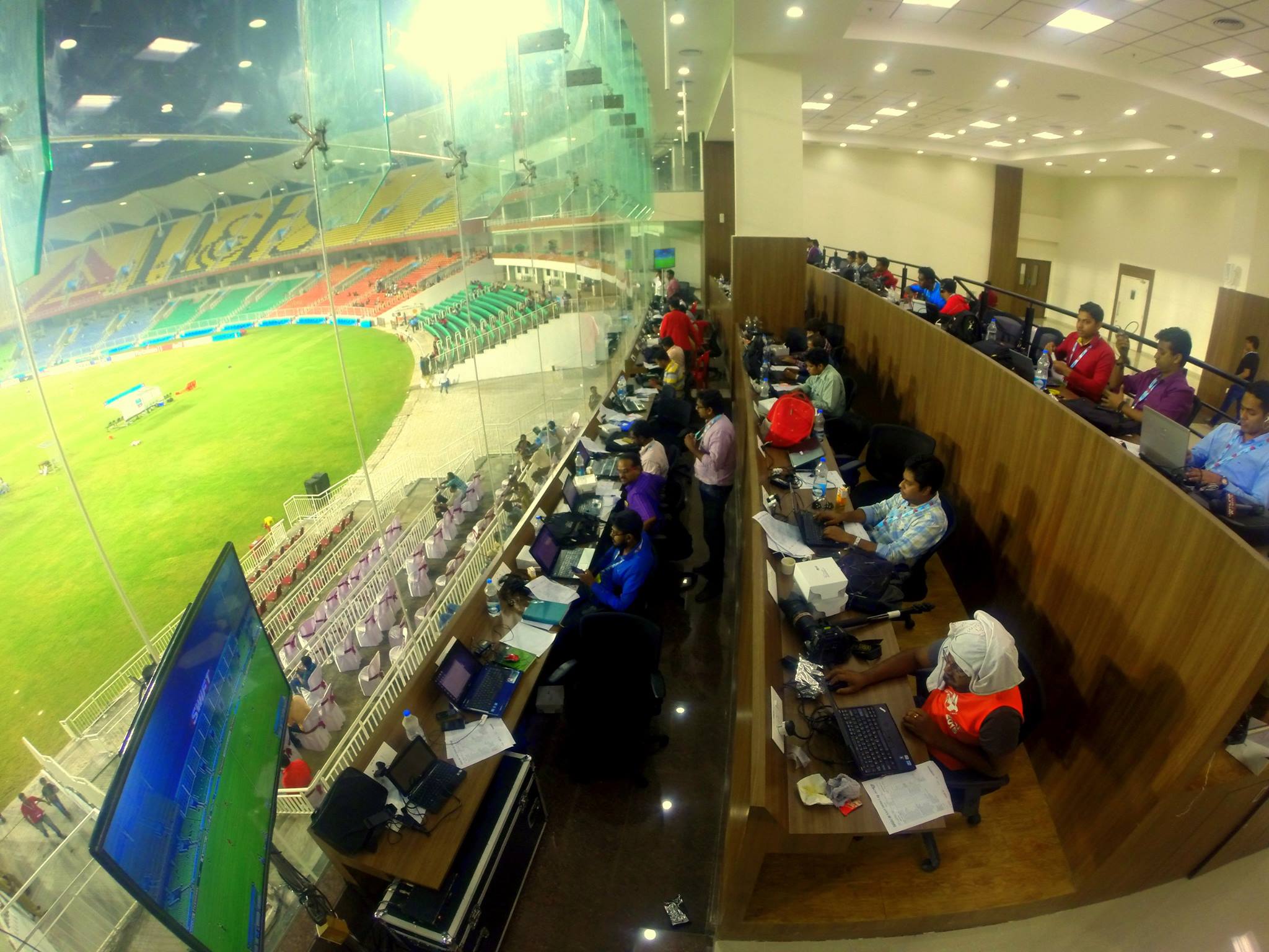 ސްޓޭޑިއަމެއްގެ މީޑިއާ ބޮކްސްގައި ނޫސްވެރިން މެޗު ކަވަރުކުރަނީ