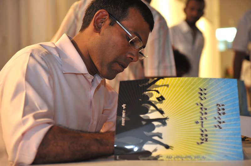 ރައީީސް ނަޝީދުު ފޮޮތެއްގައި ސޮއިކުުރައްވަނީީ. --ފޮޓޯޯ: ރައީސް އޮފީސް