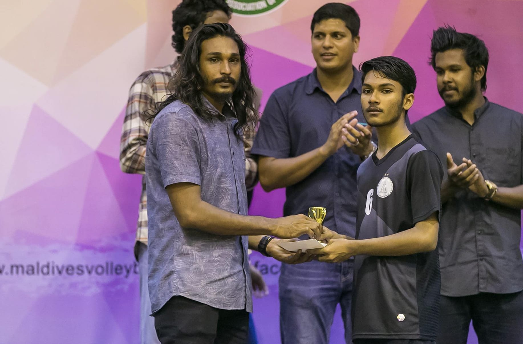 އިންޓަ ސްކޫލް/ ކޮލެޖް މުބާރާތުގެ މޮޅު ކުޅުންތެރިއަކަށް ބުޅިކެ (ވ) ޓްރޮފީ ހަވާލުކުރަނީ.-- ފޮޓޯ: ވޮލީބޯލް އެސޯސިއޭޝަން