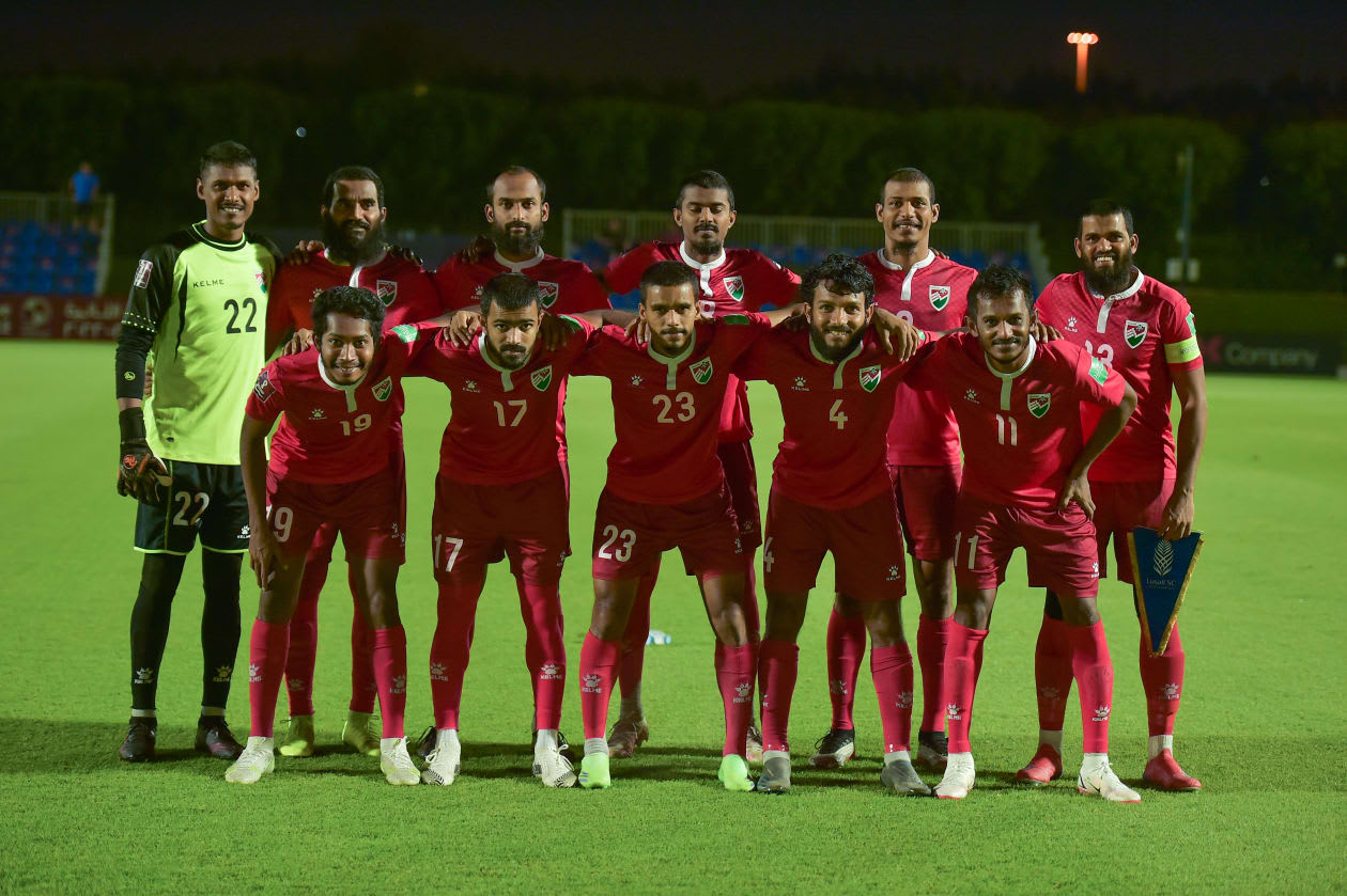 ލުސައިލްއާ ދެކޮޅަށް ނުކުތް ގައުމީ ޓީމުގެ ފުރަތަަމަ އެގާރަ ކުޅުންތެރިން.-- ފޮޓޯ: އަދަދު