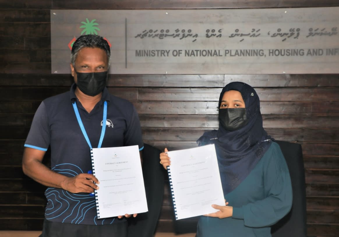 ޕްލޭނިން މިނިސްޓްރީގެ ޑިރެކްޓާ ޖެނެރަލް ޝަނާ ފާރޫގެ އަދި އެމްޓީސީސީގެ މެނޭޖިން ޑިރެކްޓާ އާދަމް އާޒިމް: މިއަދު އެއްބަސްވުމުގައި ސޮއިކުރީ އަންނަ އަހަރުގެ ތެރޭގައި މަޝްރޫއުތައް ނިންމާ ގޮތަށް. -- ފޮޓޯ: ޕްލޭނިން މިނިސްޓްރީ