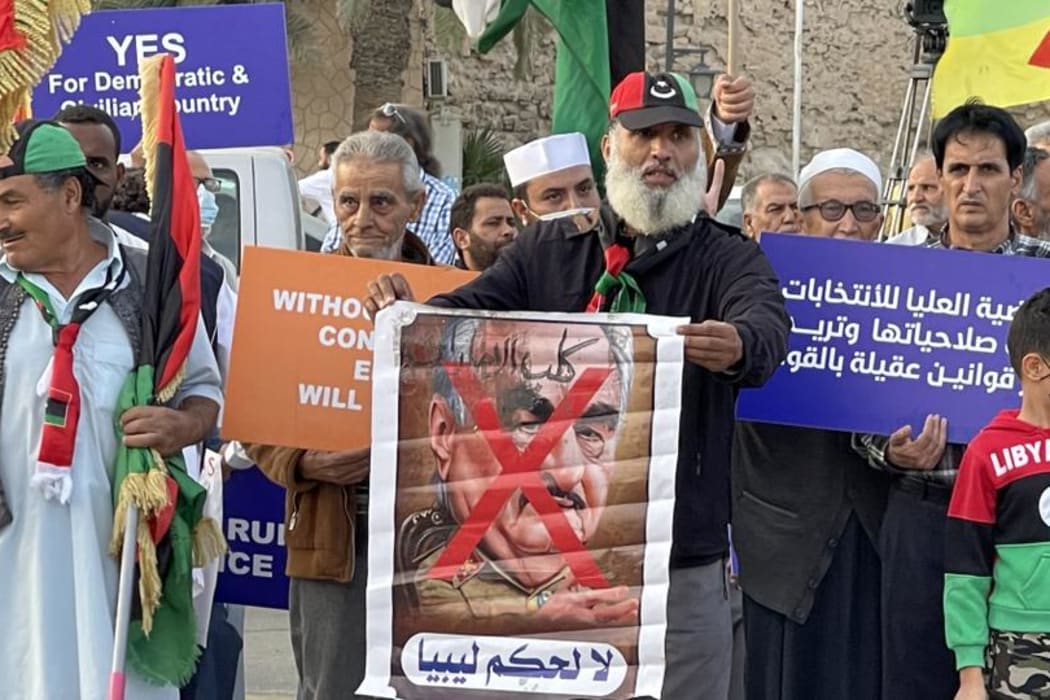ޓްރިޕޮލީ، ލީބިޔާ (ނޮވެމްބަރު 20) - އަންނަ މަހު އޮންނަ ރިޔާސީ އިންތިހާބުގައި "ހަނގުރާމައިގެ މުޖުރިމުން" ވާދަކުރާތީ ހިތްހަމަނުޖެހިފައި ތިބި އާއްމުންގެ އެތައް ސަތޭކަ ބަޔަކު ހުކުރު ދުވަހު ލީބިޔާގެ ވެރިރަށް ޓްރިޕޮލީގައި މުޒާހަރާކޮށްފި އެވެ.