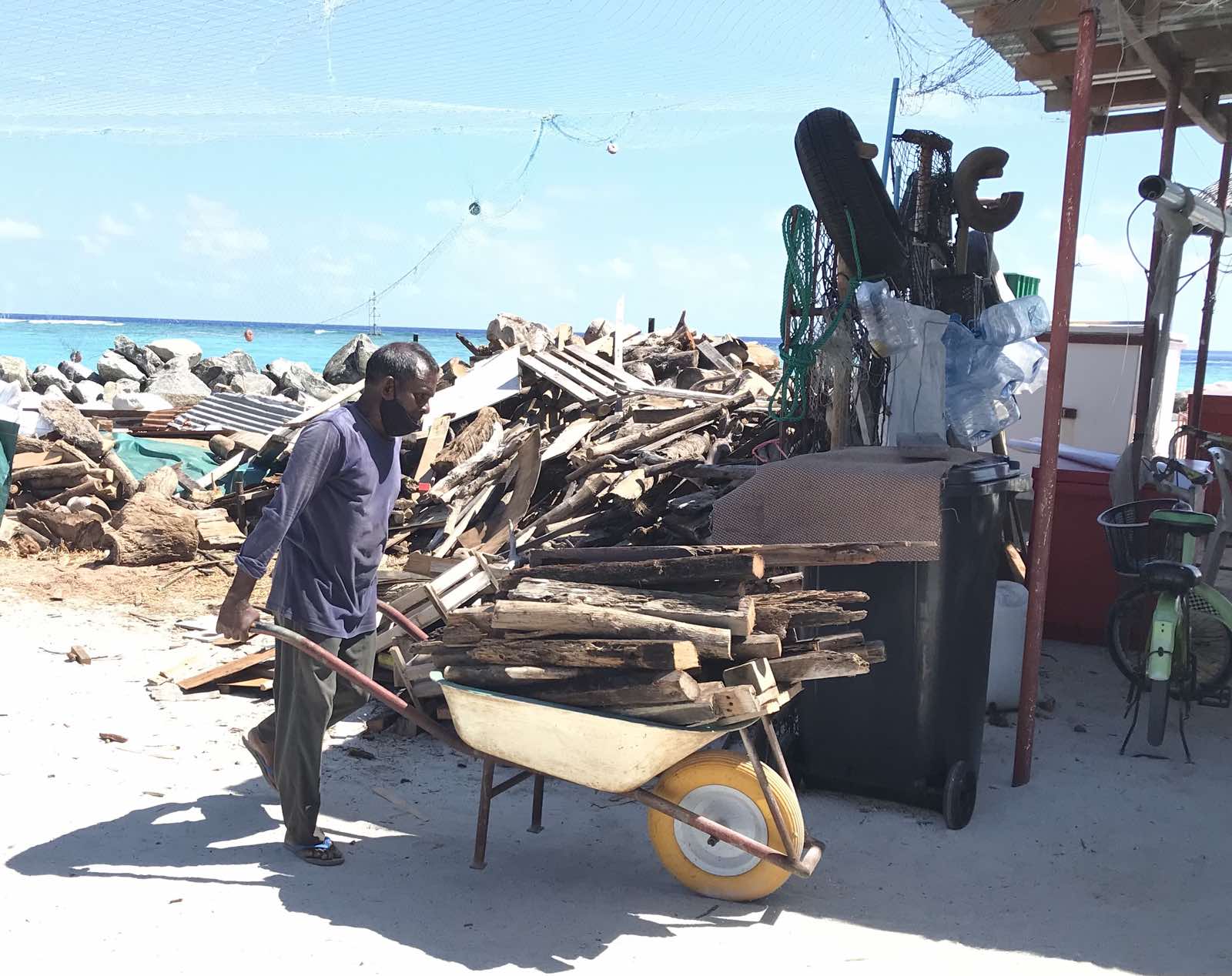 މ. ދިއްގަރުގައި މަސް ކައްކާ ގޮޅިއެއްގައި މީހަކު ދަރު ބަރޯ އެއް ގެންދަނީ: ގޮޅީގައި މަސައްކަތްކުރާ މީހުންނަށް ރަނގަޅު އުޖޫރައެއް ދޭ-- އަދަދު ފޮޓޯ/ އަހުމަދު ސައީދު