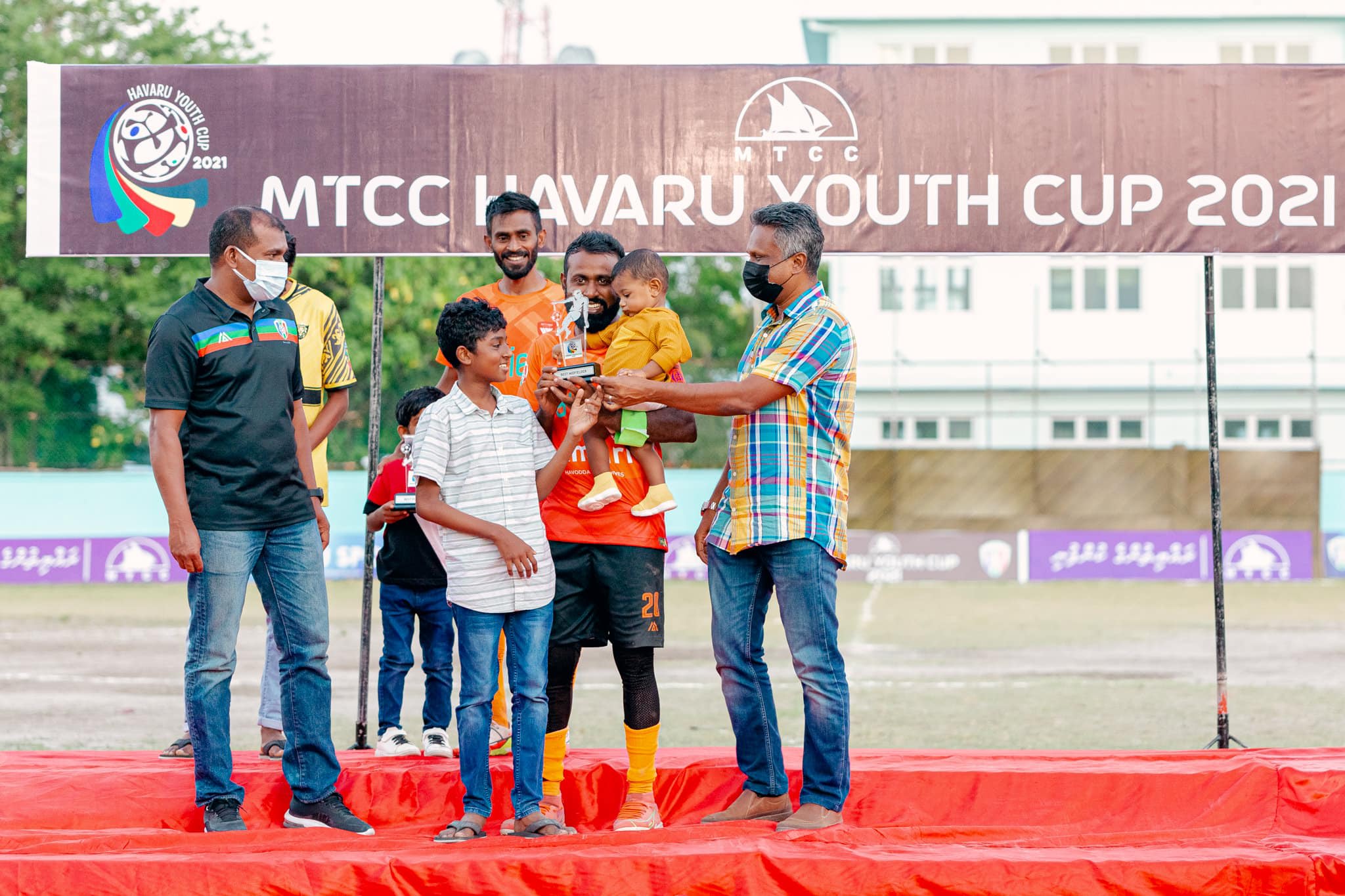 ތިނަދޫ "ހަވަރު ސްޕޯޓްސް" އިން ބޭއްވި "ހަވަރު ޔޫތު ކަޕް" ގެ އިނާމު ދިނުމުގެ ރަސްމިއްޔާތުގައި މުބާރާތުގެ ސްޕޮންސާ އެމްޓީސީސީގެ ސީއީއޯ އާދަމް އާޒިމް އިނާމް ދެއްވަނީ. --ފޮޓޯ: ހަވަރު ސްޕޯޓްސް