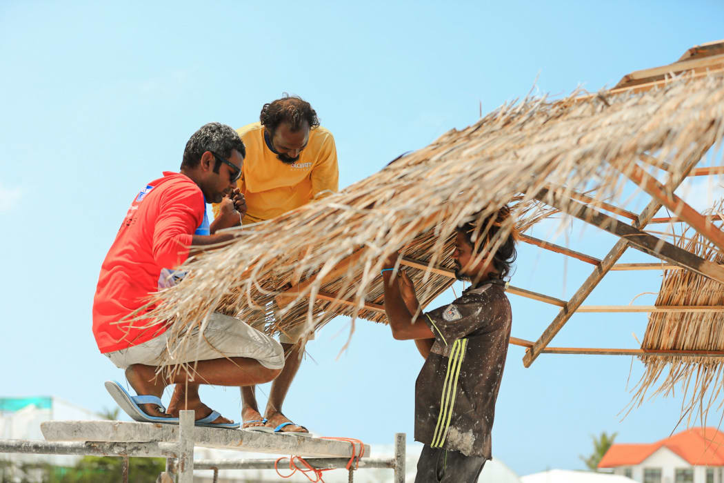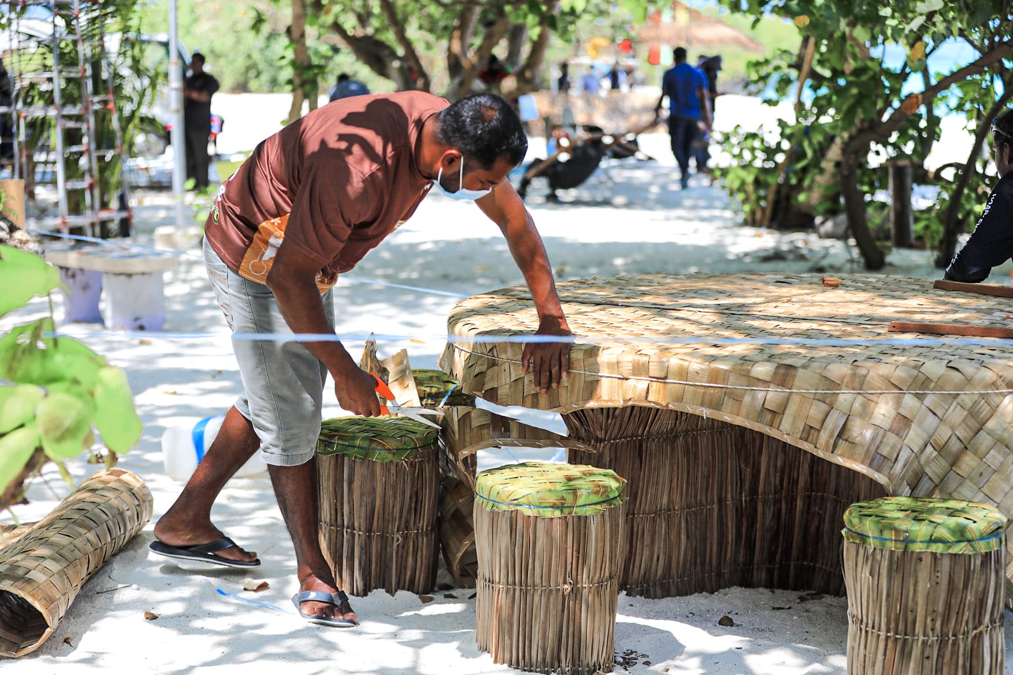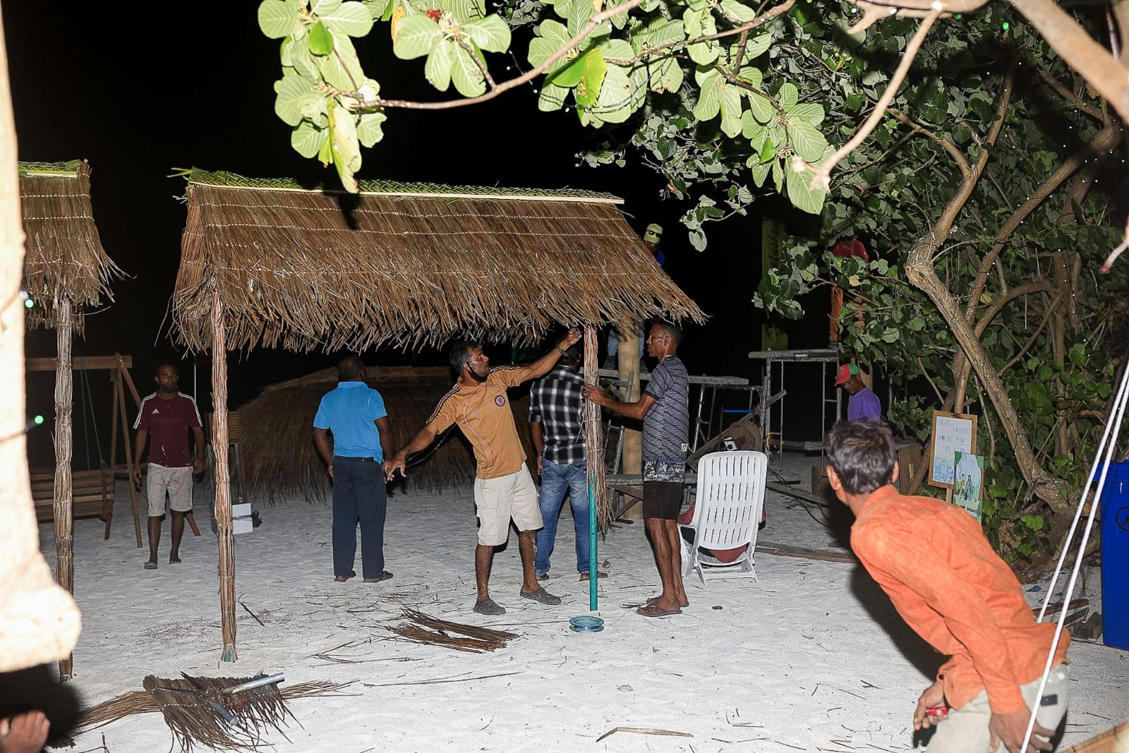 ސަވާދިއްތަ ދަތުރަށް ހޯރަފުށީގައި ހަޓެއް ހެދުމުގެ މަސައްކަތް އެ ރަށުގެ ޒުވާނުން ކުރަމުންދަނީ. މި ތައްޔާރީތަކުގައި ރަށުގެ ގިނަ އަދަދެއްގެ ރައްޔިތުން އަންނަނީ ބައިވެރިވަމުން -- ފޮޓޯ: އެމްއައިޓީޑީސީ