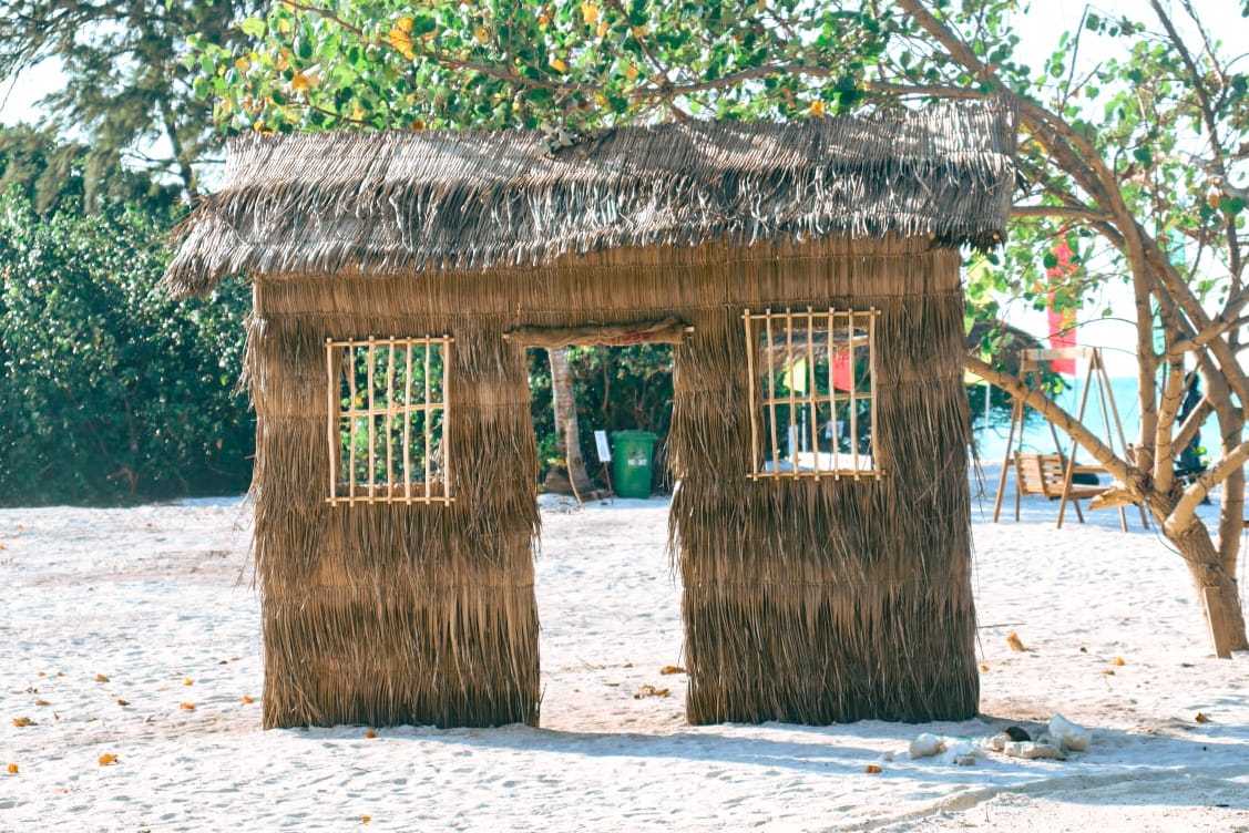 ކޮންކްރީޓުން ހަދާފައި ހުރި މޭޒެއް ބީޗު ސަރަހައްދުގައި ހުރި ގަސްތަކުގެ ހިޔަލުގައި ހުރިއިރު، އެ ވަށް މޭޒާއި، ވަށައިގެން ޖަހާފައި ހުރި ގޮނޑިތަކަށްވެސް ހީވަނީ ފަން ވިޔެގެން ހަދާފައި ހުރި ކަވަރު ސެޓެއް އަރުވާފައި ހުރިހެނެވެ. އެހާވެސް ޗާލު އަދި ނަލަ އެވެ. މިގޮތަށް އެ ސަރަހައްދުގައި ހުރި ހުރިހާ އެއްޗަކަށްވެސް ކޮންމެސް ގޮތަކަށް ދިވެހިވަންތަ ސިފަ ގެނެސްފައި ހުއްޓެވެ.