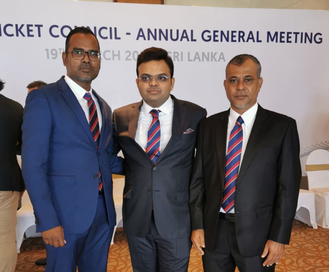 ކްރިކެޓް ބޯޑުގެ ނައިބު ރައީސް ދޮނާ (ކ) އާއި އޭސީސީގެ ރައީސް ޖޭ ޝާހު (މ) އަދި ކްރިކެޓް ބޯޑުގެ ރައީސް ފައިސަލް (ވ)