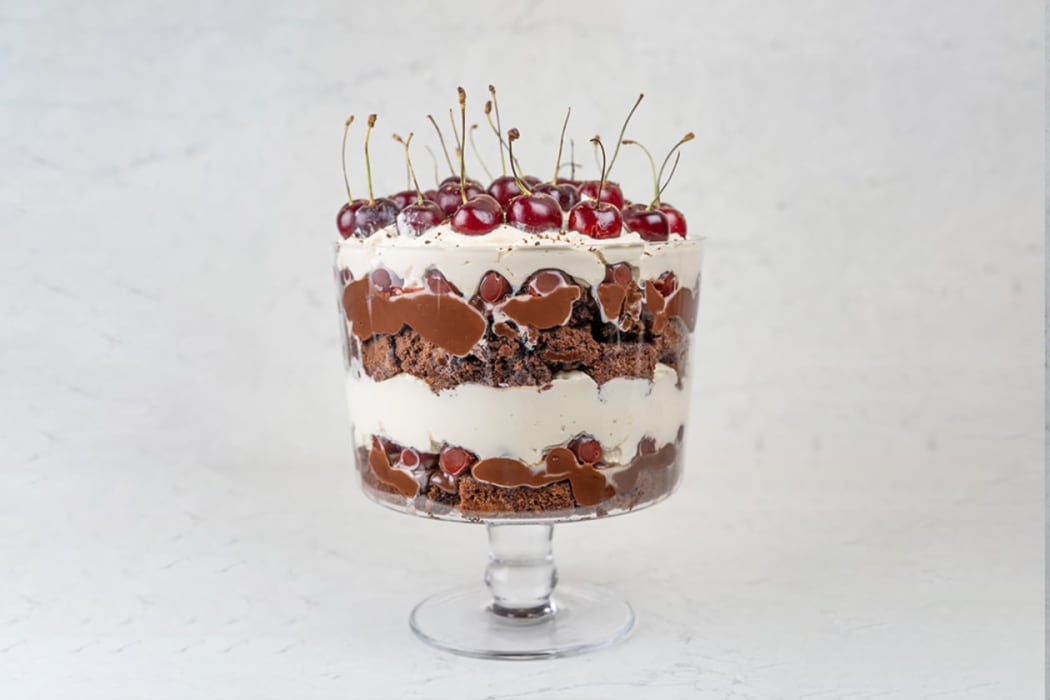 ކޭކް ލޭޔާގެ މައްޗަށް ދިޔާކުރި ޗޮކްލެޓްކޮޅު އަޅާށެވެ. އޭގެ މައްޗަށް ދަޅު ޗެރީގެ ލޭޔާއެއް އަޅާށެވެ. އެއަށްފަހު އޭގެ މައްޗަށް ތައްޔާރުކުރި ކްރީމް ލޭޔާ އަޅާށެވެ. އެގޮތަށް އިތުރު އެއް ލޭޔާ ތަކުރާރު ކުރާށެވެ. އެއަށްފަހު އެންމެ މަތީ ލޭޔާގައި ޗެރީ އަތުރާށެވެ.