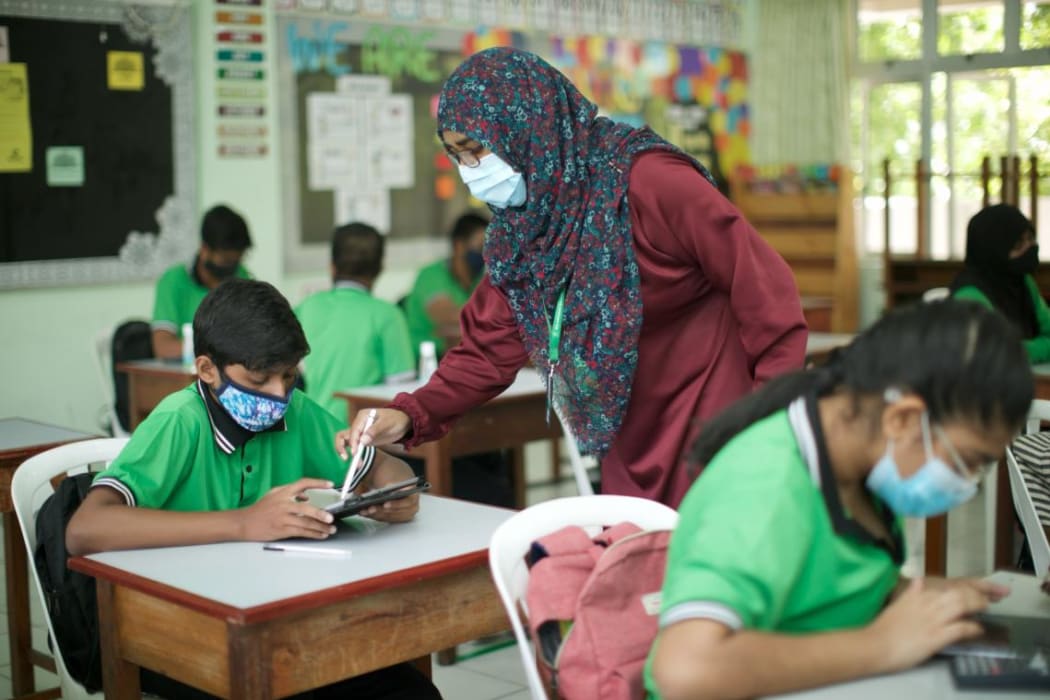 ޓީޗަރަކު ސްކޫލުގައި ދަރިވަރަކަށް އުނގަންނައިދެނީ: ޓީޗިން ދާއިރާއަށް ވަން ކުދިންގެ އަދަދު ވަނީ މިދިޔަ އަހަރުތަކުގެ ތެރޭގައި ވަރަށް ބޮޑަށް މަދުވެފައި -- ފޮޓޯ: ޔުނިސެފް