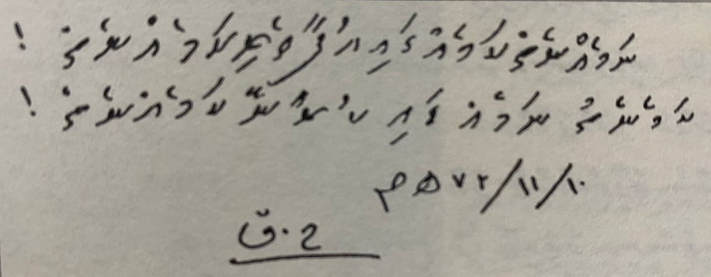ބޮޑުފެންވަޅުގޭ ސީދީ އަމިއްލަ އަތުން ލިޔުއްވާފައިވާ ބައިތެއް. މި ބައިތުގެ ތިރީގައި ޖައްސަވާފައި އެއޮތް ހ.ގ ގެ މާނައަކީ ހިމާރުލްގައުމު.