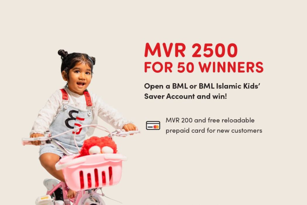 ބީއެމްއެލް ނުވަތަ ބީއެމްއެލް އިސްލާމިކް ކިޑްސް ސޭވާ އެކައުންޓެއް ހުޅުވައިގެން ނަސީބުވެރި 50 ފަރާތަކަށް 2500ރ. ގެ ވައުޗަރެއް ލިބޭ ޕުރޮމޯޝަނެއް ފަށައިފި އެވެ.