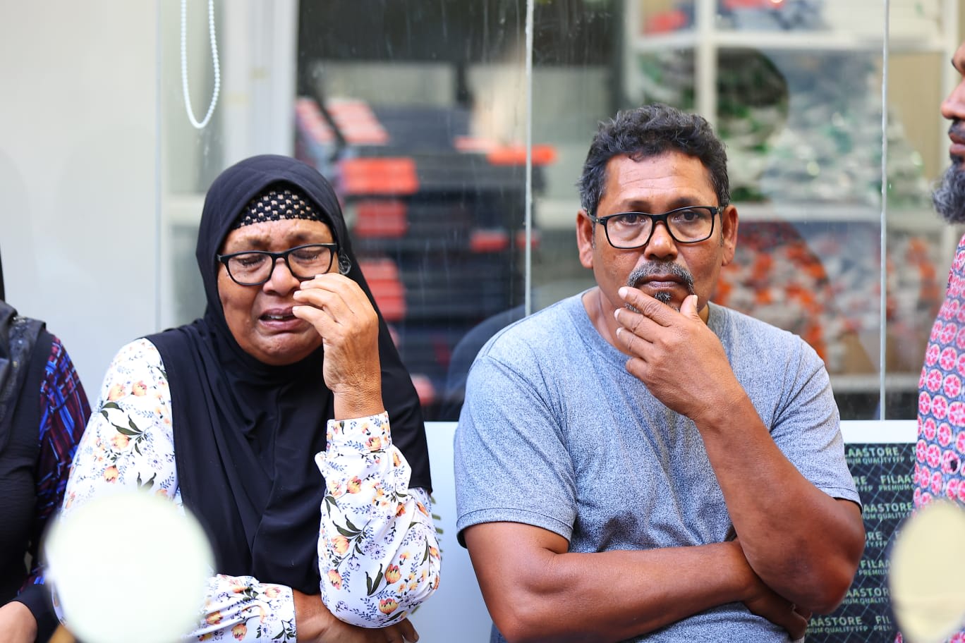 އަބްދުﷲ ގެ މަަންމަ އަދި އާއިލާގެ މެންބަރުން ގަލޮޅު މޯޗަރީ ސަރަހައްދުގައި -- ފޮޓޯ: މުހައްމަދު ޝާބިން / އަދަދު