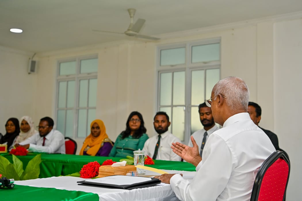 ރައީސް ސޯލިހު، ގދ. ފަރެސްމާތޮޑާ ކައުންސިލާއި ޑަބްލިޔުޑީސީ މެމްބަރުންނާ ބައްދަލުކުރައްވަނީ. -ފޮޓޯ: ރައީސް އޮފީސް