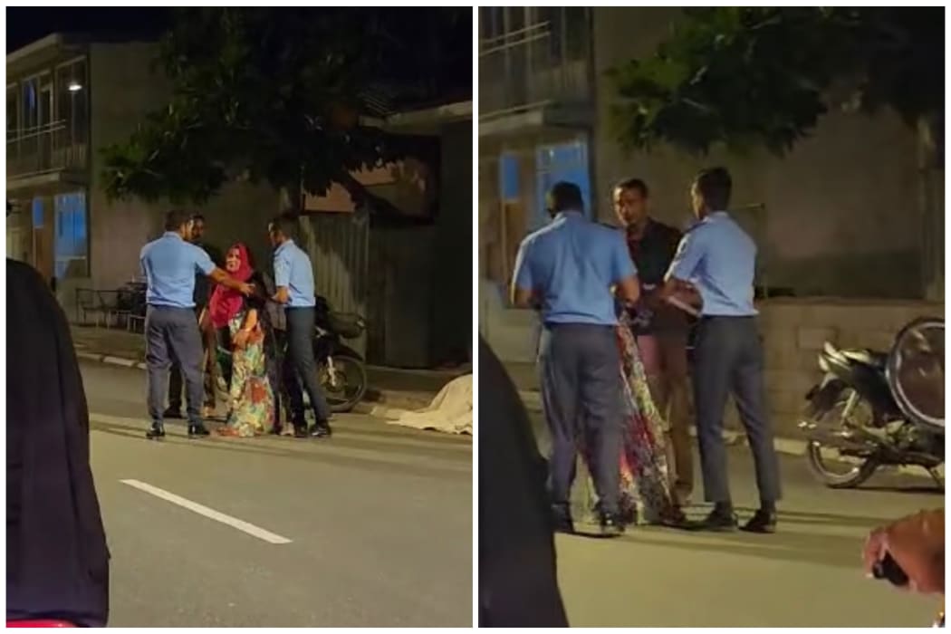 މިހާރު ސޯޝަލްމީޑިއާގައި ދައުރުވަމުން އަންނަ ވީޑިއޯއެއްގައި ފެންނަނީ ދެ ފުލުހަކާއި އާންމުންގެ މީހަކު ތިބެގެން އަންހެނަކު ކުރިޔަށް ހިނގިޔަ ނުދީ ހުއްޓުވާ މަންޒަރެވެ. އެ ވީޑިއޯއިން ފުލުހަކު އަންހެން މީހާގެ ދެކޮނޑުގައި އަތް އަޅާ ދެ ފަހަރެއްގެ މަތިން ކޮއްޕާލާ މަންޒަރު ފެނެ އެވެ. އަދި އަންހެން މީހާ މަގުމަތީގައި އޮށޯންނަ މަންޒަރު ވެސް ފެނެ އެވެ.