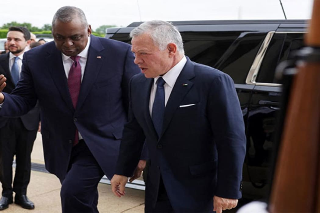 އުރުދުންގެ ރަސްގެފާނު އަބްދުﷲ އަދި އެމެރިކާގެ ސެކެޓްރީ އޮފް ޑިފެންސް ލޮއިޑް އޯސްޓިން. -- ފޮޓޯ: ދުންޔާ ނިއުސް