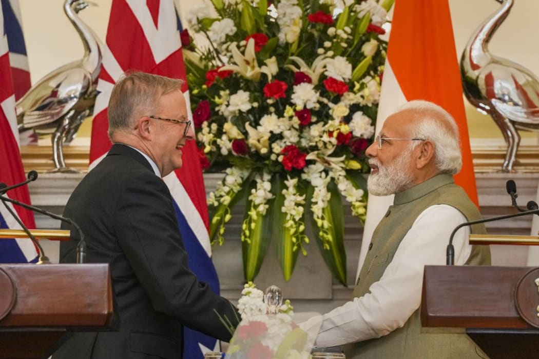 އިންޑިއާގެ ބޮޑު ވަޒީރު ނަރެންދްރަ މޯދީ އަދި އޮސްޓްރޭލިއާގެ ބޮޑު ވަޒީރު އެންތަނީ އަލްބަނީޒް. -- ފޮޓޯ: ޕީޓީއައި