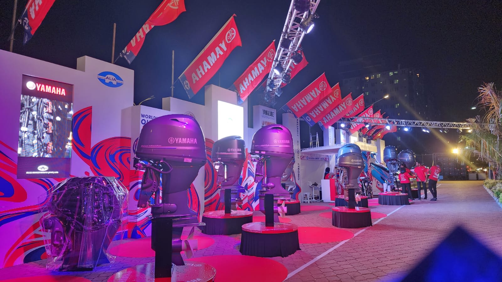 މެރިން އެކްސްޕޯގައި ބަހައްޓާފައި ހުރި އެލިއާގެ ސްޓޯލް. ޔަމަހާ ބްރޭންޑުގެ އެންމެ ފަހުގެ އިންޖީނުތައް މިތަނުގައި ހުންނާނެ --- ފޮޓޯ: އަދަދު