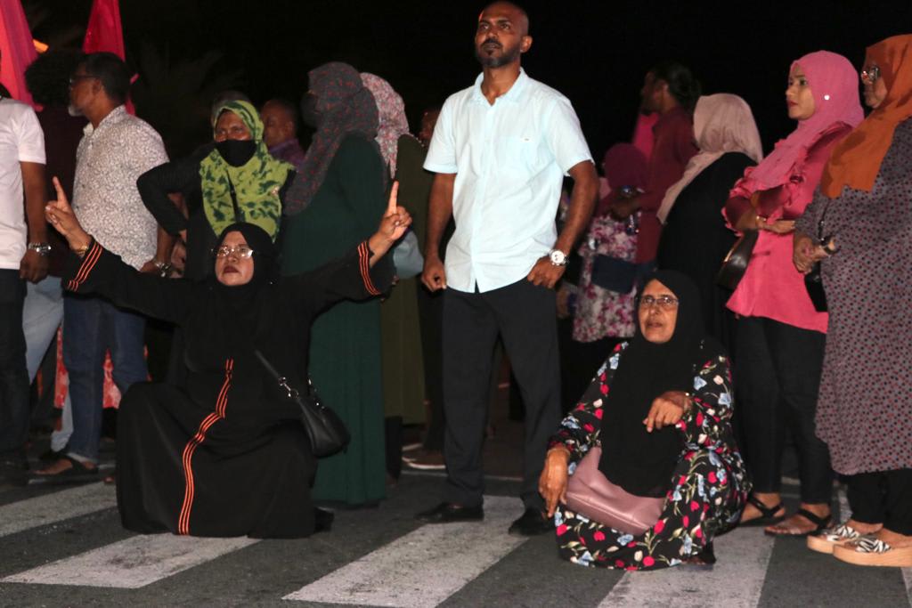 ރައީސް ސޯލިހުގެ ކާރުކޮޅު ހުއްޓުވުމަށްޓަކައި ޕީޕީއެމްގެ ސަޕޯޓަރުން އެ އޮފީހުގެ މަގުމަތީގައި އިށީނދެ ލައިގެން. --ފޮޓޯ: ޝަހީދު