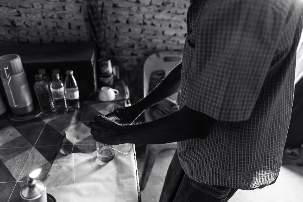 އުމުރުން 70 އަހަރުގެ އަބްދުﷲ އޭނާ ދިރިއުޅޭ މައިންބަފައިންގެ ގޭގެ އަށިމަތީގައި އިށީނދެލައިގެން. އެގޭގައި މިޒަމާނުގެ އެއްވެސް ކުލައެއް ނެތް. -- ފޮޓޯ: މުހައްމަދު ޝާބިން/އަދަދު
