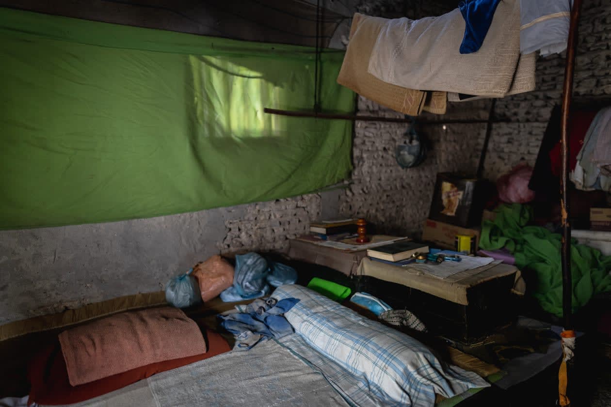 ބައެއް އަށިތަކުގައި ހުރީ ތުނި ގޮދަޑި އަޅައިފަ އެވެ. އަނެއް އަށިތަކުގައި ތަރުފާލެވެ. ދެ އައްޓެއްގެ ބޯލާކޮޅުގައި ލަކުޑި ފޮއްޓެއް ބަހައްޓާފައިވެ އެވެ. ލާން ގެންގުޅޭ އަންނައުނު ހުރީ ޕްލާސްޓު ކޮތަޅަށް އަޅައި، ކޭލި ޖަހާފައި ފައިދޮށުގައި އެލުވައިފަ އެވެ. ވޮށް ދިއްލުމަށް ގޭގެ ދެ ބިތުގައި ފުޅި ބައްތި އެލުވާފައި ހުއްޓެވެ. ގެންގުޅޭ ސާމާނު ވެސް އެހެންނެވެ. އެކި ބިތުގައި ޖަހާފައިވާ މޮހޮރުތަކުގައި އެލުވައިފަ އެވެ.