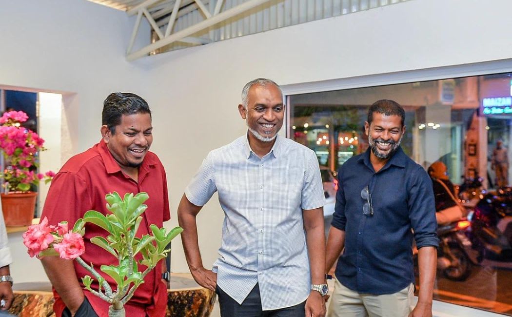 ސިޓީ ކައުންސިލްގެ ގަސް ވިއްކާ ފިހާރަ ހުޅުވި ރޭ، މޭޔަރު ޑރ. މުހައްމަދު މުއިއްޒާއި ސިޓީ ކައުންސިލް މެމްބަރު އާދަމް ރަމީޒު (ވ) އަދި ސިޓީ ކައުންސިލް މެމްބަރު އަބްދުﷲ. -- ފޮޓޯ: މާލޭ ސިޓީ ކައުންސިލް