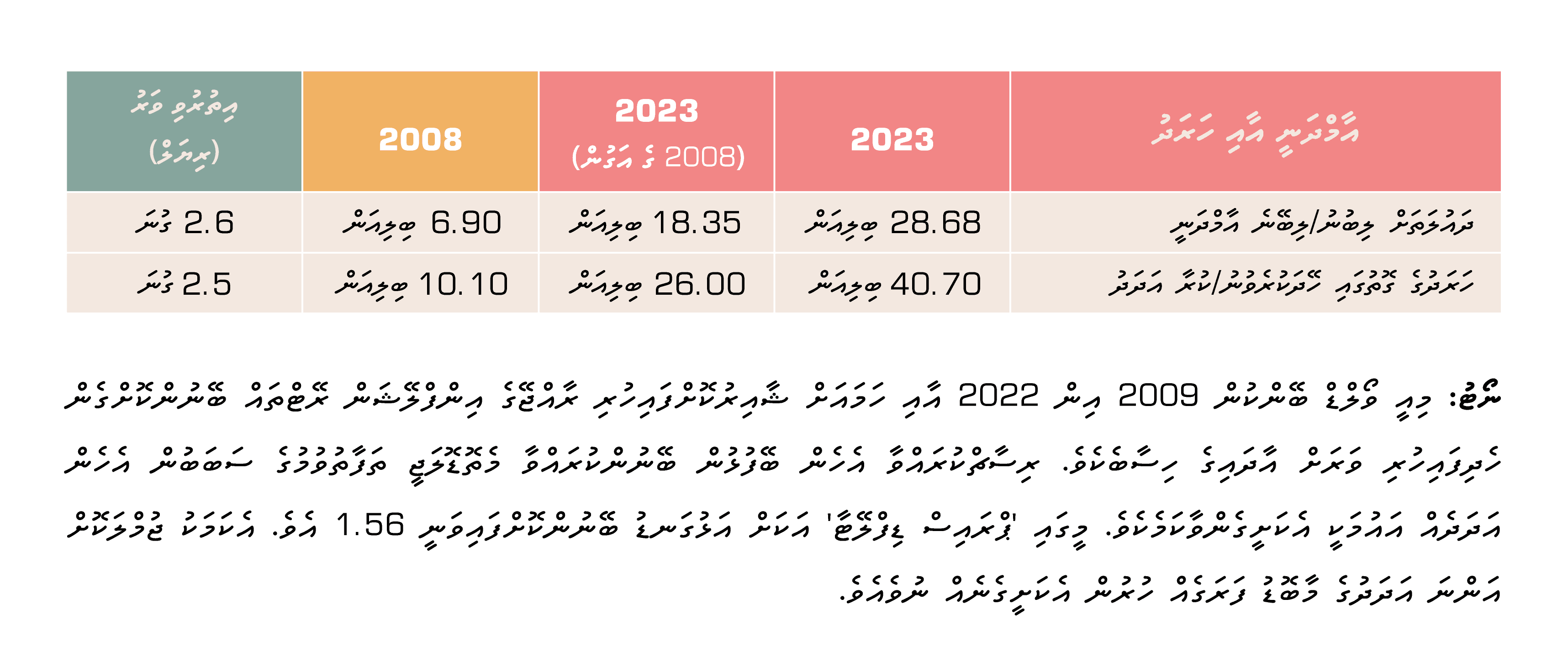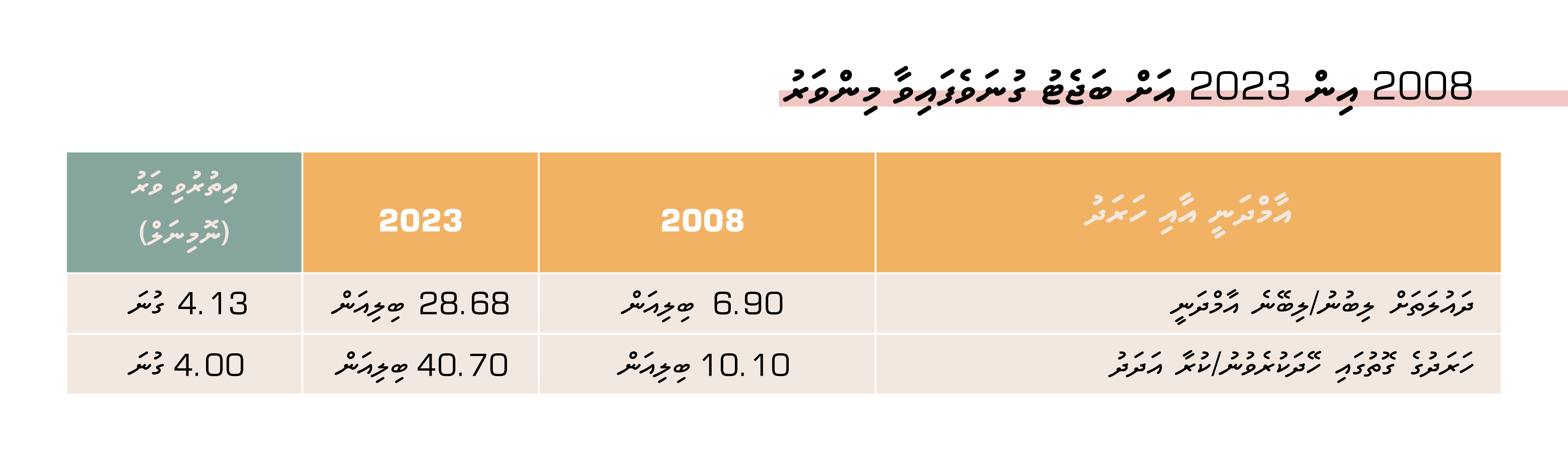 2023 ވަނަ އަހަރަށް ލަފާކުރާ 28.60 ބިލިއަން ރުފިޔާގެ އާމްދަނީ 2008 ގެ އަގަށް ބަދަލުކުރީމައި އަންނަނީ ގާތްގަނޑަކަށް 18.35 ބިލިއަން ރުފިޔާއެވެ. އަދި 2023 ވަނަ އަހަރުގެ 40.70 ބިލިއަން ރުފިޔާގެ ބަޖެޓް، 2008 ގެ އަގަށް ބަދަލުކުރީމައި އަންނަނީ ގާތްގަނޑަކަށް 26 ބިލިއަން ރުފިޔާއެވެ.