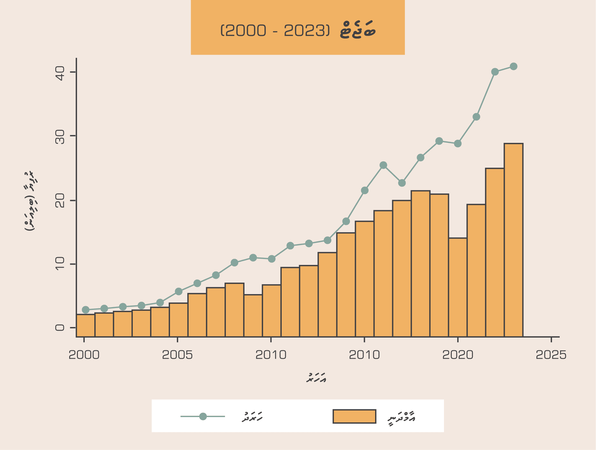 މިއީ 2008 އިން 2023 އަށް ބަޖެޓު ގުނަވެފައިވާ މިންވަރު