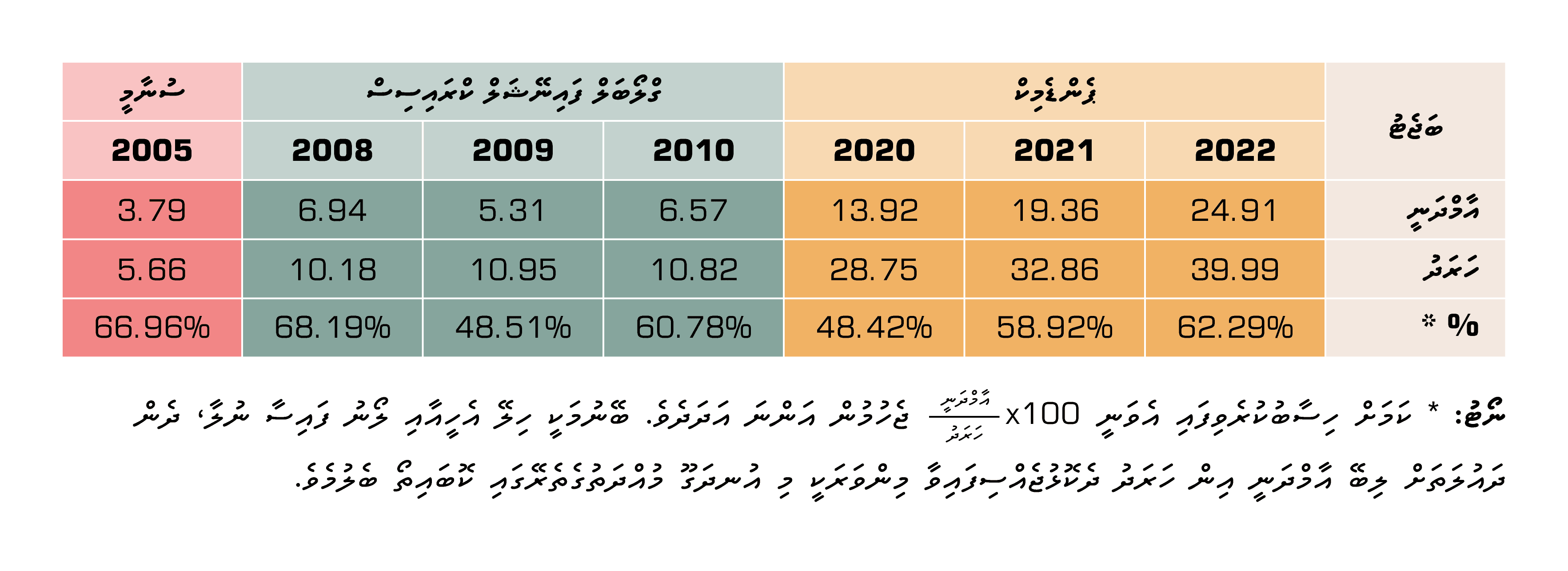 މިއިން ކޮންމެ މުއްދަތެއްގައިވެސް ލިބޭ އާމްދަނީއިން ބަޖެޓު ހަމަޖެއްސޭ މިންވަރު 70 އިންސައްތައަށްވުރެ ތިރިވިއެވެ. އެންމެ ބޮޑަށް ތިރިވީ 2009 ވަނަ އަހަރާއި 2020 ވަނަ އަހަރުގައެވެ. އެ ދެފަހަރުގައިވެސް ލިބޭ އާމްދަނީއިން ބަޖެޓު ހަމަޖެއްސޭ މިންވަރު ވަނީ 50 އިންސައްތައަށްވުރެ ދަށަށް ގޮސްފައެވެ.