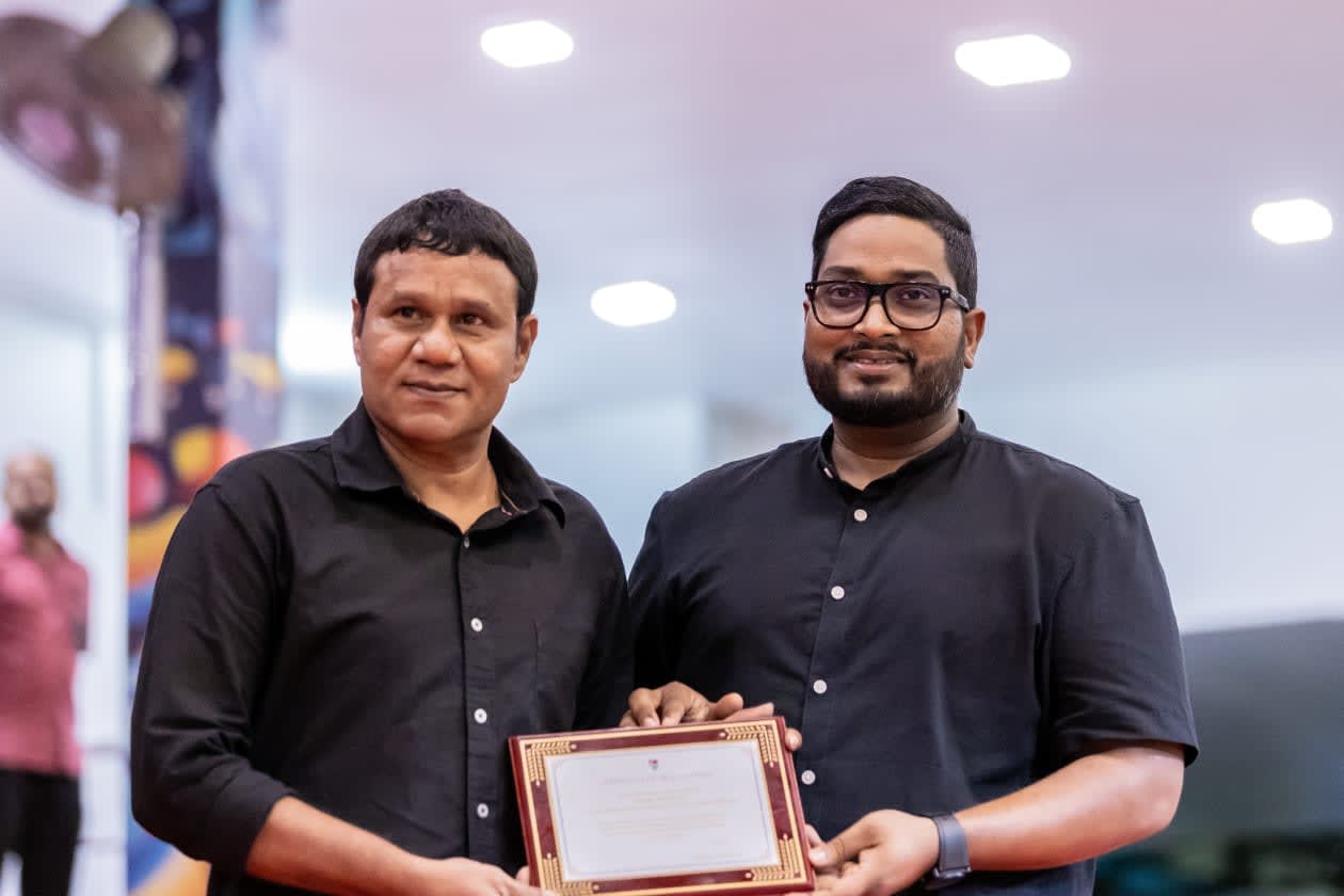 ޕްރެޒިޑެންޓްސް ކަޕް ފައިނަލް މެޗަށް ފަހު ބޭއްވި ރަސްމިއްޔާތުގެ ތެރެއިން ވަނީ ޕްރޯ ލައިންސަންސް ހާސިލްކުރި އިންމަ (ކ)، ނިޒާމްބެ (މ) އަދި ސުޒޭން އަށް ހާއްސަ ފިލައެއް ހަދިޔާކޮށްފައި.-- ފޮޓޯ: އަބްދުﷲ އިޔާން/ އަދަދު