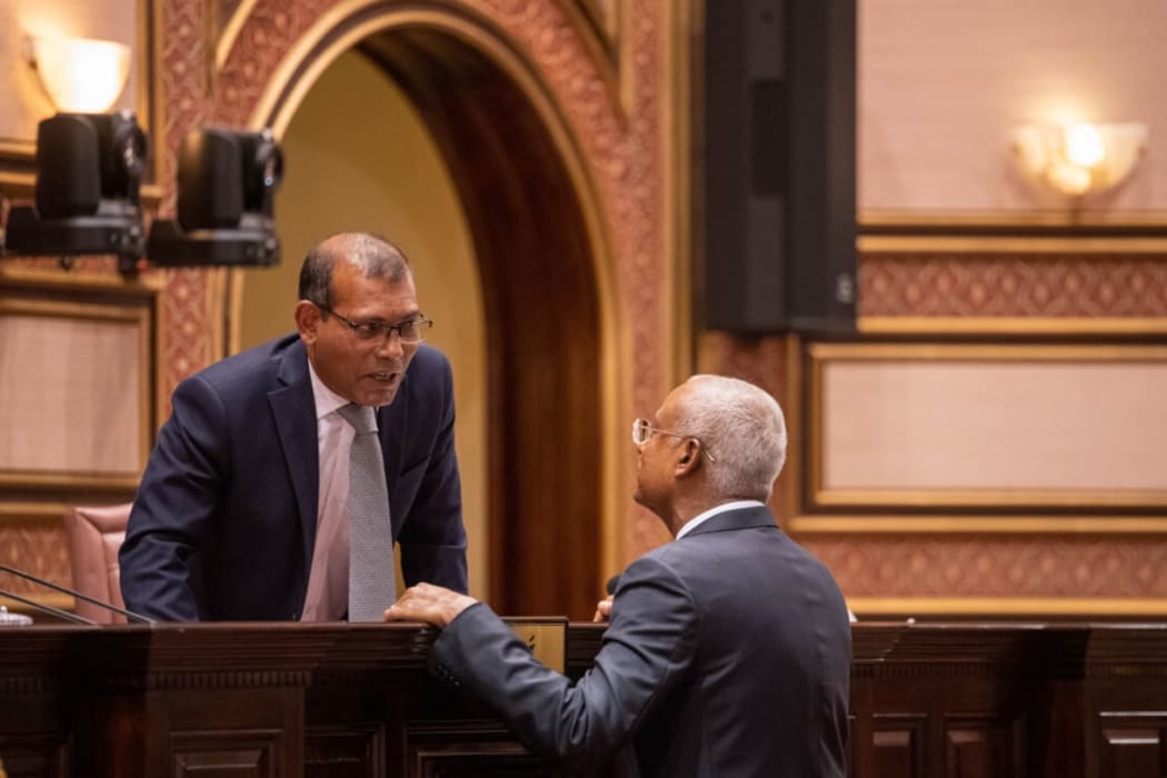 ރައީސް އިބްރާހީމް މުހައްމަދު ސޯލިހު އަދި ރައީސް މުހައްމަދު ނަޝީދު؛ އެމްޑީޕީން ފުރަތަމަ ވަކިކުރަން ޖެހޭނީ ރައީސް ސޯލިހު ކަމަށް ނަޝީދު ވިދާޅުވެއްޖެ - ފޮޓޯ: މަޖިލިސް