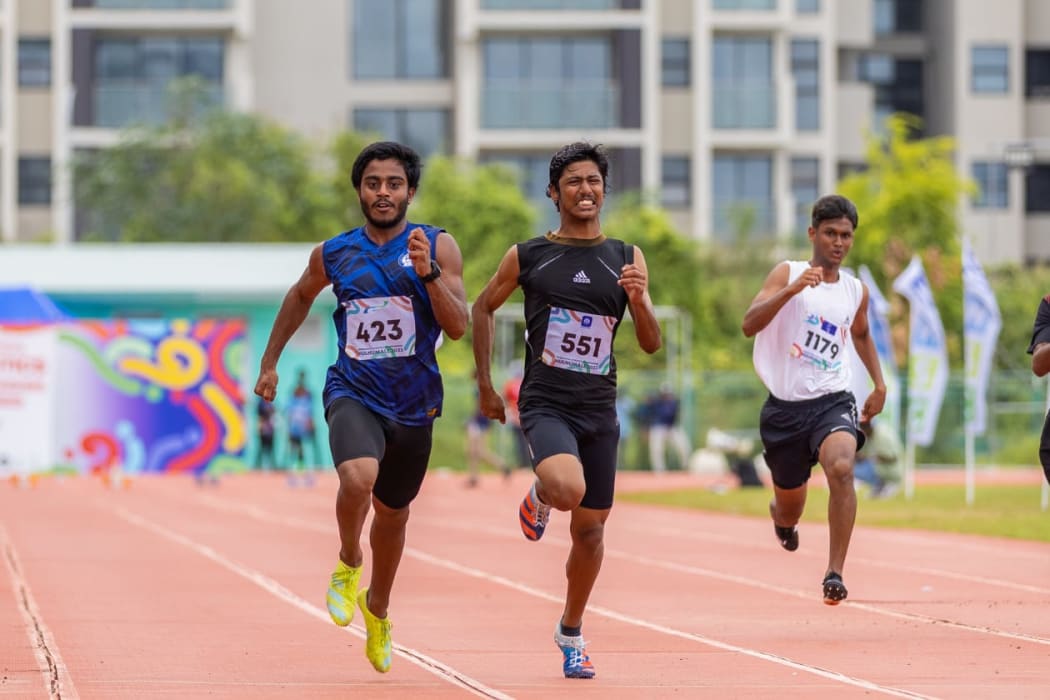 އިންޓަ ސްކޫލް އެތުލެޓިކްސް މުބާރާތުގެ 20 އަހަރުން ދަށުގެ ފިރިހެން ކުދިންގެ ފައިނަލު ހީޓުގެ ތެރެއިން - ފޮޓޯ: މުހައްމަދު ޝާބިން/އަދަދު