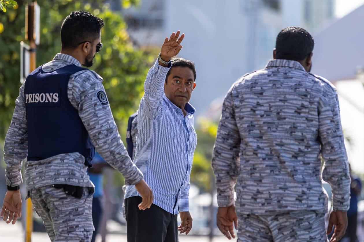 ކްރިމިނަލް ކޯޓުގައި އޮތް އަޑުއެހުމަކަށް ހާޒިރުވެވަޑައިގަތުމަށް ފަހު ކަރެކްޝަންސްގެ ލޯންޗަކަށް ޔާމީން އަރާވަޑައިގަންނަވަނީ --- ފޮޓޯ: މުހައްމަދު ޝާބިން/އަދަދު