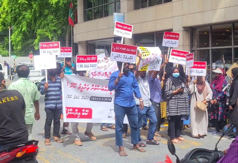 ސީލައިފްއިން ލަނޑު ލިބުނު ބައެއް މީހުން މިއަދު އަމީރު އަހުމަދު މަގުގައި މުޒާހަރާ ކުރަނީ: އެ މީހުން ބުނާ ގޮތުގައި މި މައްސަލައާ ގުޅިގެން ރައީސް އިބްރާހިމް މުހައްމަދު ސޯލިހާ ބައްދަލުކުރަން އެދުނަސް އެ ފުރުސަތު ދީފައި ނުވޭ -- ފޮޓޯ:އަދަދު