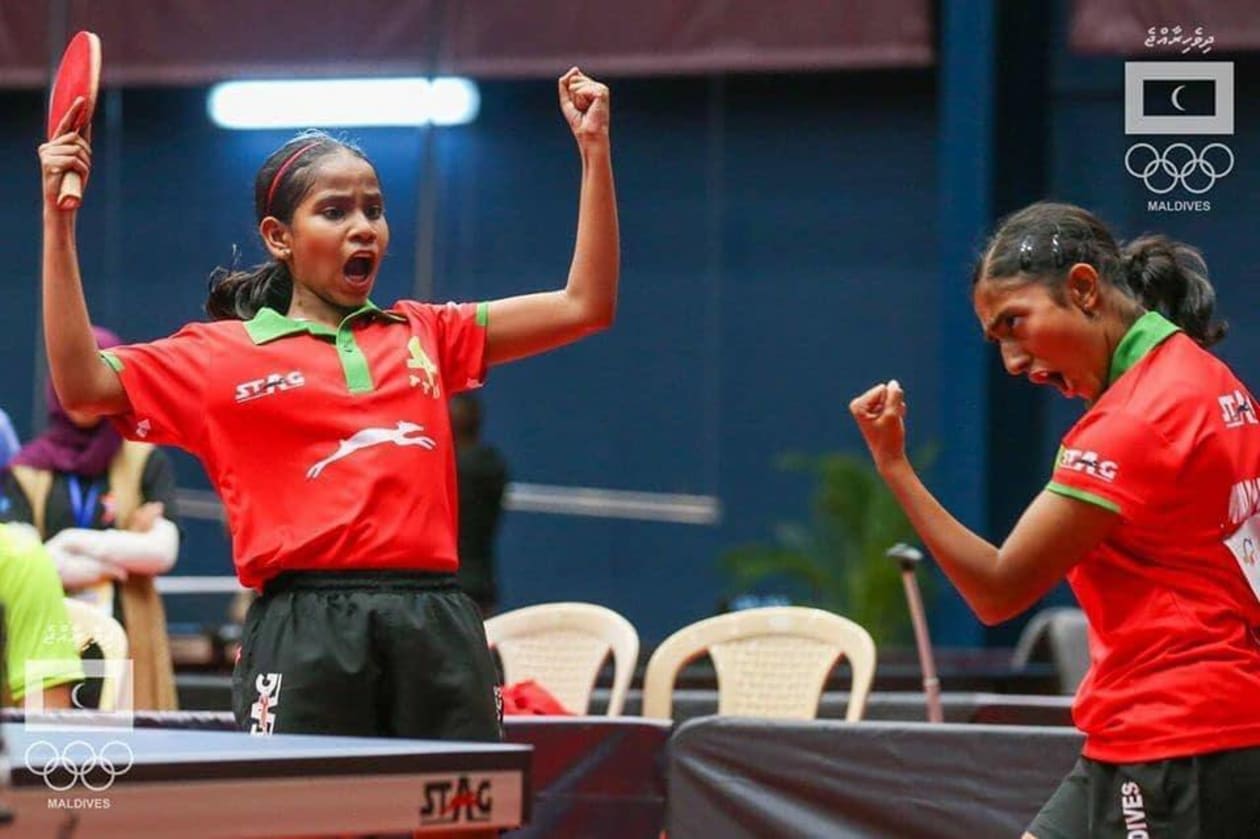 2019 ވަނަ އަހަރުގެ އައިއޯއައިޖީގައި ޓީޓީގެ އަންހެން ޑަބަލްސް މެޗެއްގެ ތެރެއިން: މިއީ އިއްސެ އަށް ނެގުނު އެންމެ މޮޅު އެއް ފޮޓޯ.-- ފޮޓޯ: އިސްމާއިލް ތޯރިގު/ މޯލްޑިވްސް އޮލިމްޕިކް ކޮމިޓީ