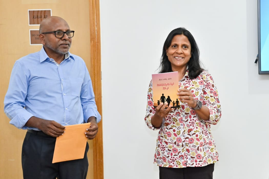 ގައުމީ ކުތުބުހާނާގައި މިއަދު ހެނދުނު ބޭއްވި ރަސްމިއްޔާތެއްގައި ފޮތް ނެރެދެއްވީ ރައީސުލްޖުމްހޫރިއްޔާގެ އަނބިކަނބަލުން ފަޒްނާ އަހުމަދެވެ.