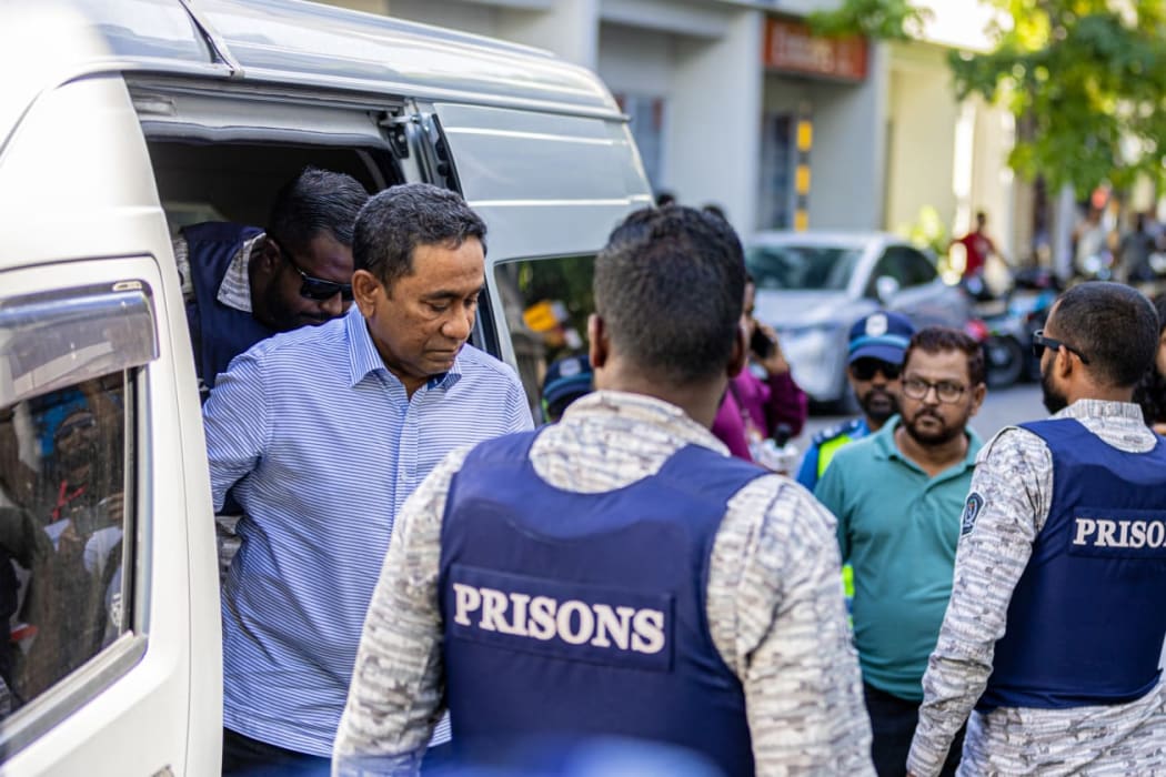 ކުރީގެ ރައީސް އަބްދުﷲ ޔާމީން ކޯޓަށް ވަޑައިގެންނެވުމަށް ޓަކައި ކަރެކްޝަނަލް ސާވިސްގެ ވެހިކަލަކުން ފައިބާވަޑައިގަންނަވަނީ. ފޮޓޯ: އަބްދުﷲ އިޔާން/އަދަދު