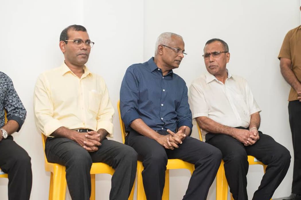ވިލުފުށީ ދާއިރާގެ މެންބަރު ހަސަން އަފީފު (ކ)، ރައީސް އިބްރާހިމް މުހައްމަދު ސޯލިހު، އަދި ރައްޔިތުން މަޖިލީހުގެ ރައީސް މުހައްމަދު ނަޝީދު (ވ) : ޑިމޮކްރެޓްސް ދޫކޮށް އަލުން އަނބުރާ އެމްޑީޕީއަށް އައުމަށް ރައީސް ވަނީ އަފީފަށް ދައުވަތު ދެއްވާފަ - ފޮޓޯ: ފައިލް