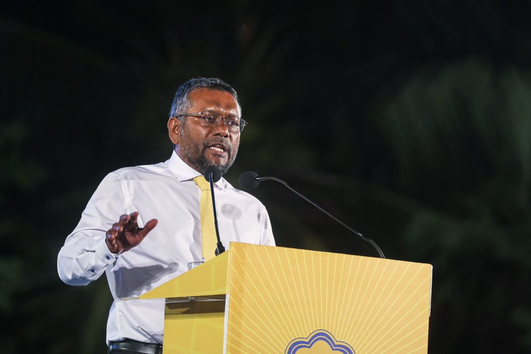 އިކޮނޮމިކް މިނިސްޓަރު ފައްޔާޒު އިސްމާއީލް، އެމްޑީޕީން މިރޭ ބޭއްވި ޖަލްސާގައި ވާހަކަދައްކަވަނީ. ފޮޓޯ:އަބްދުﷲ އިޔާން/އަދަދު