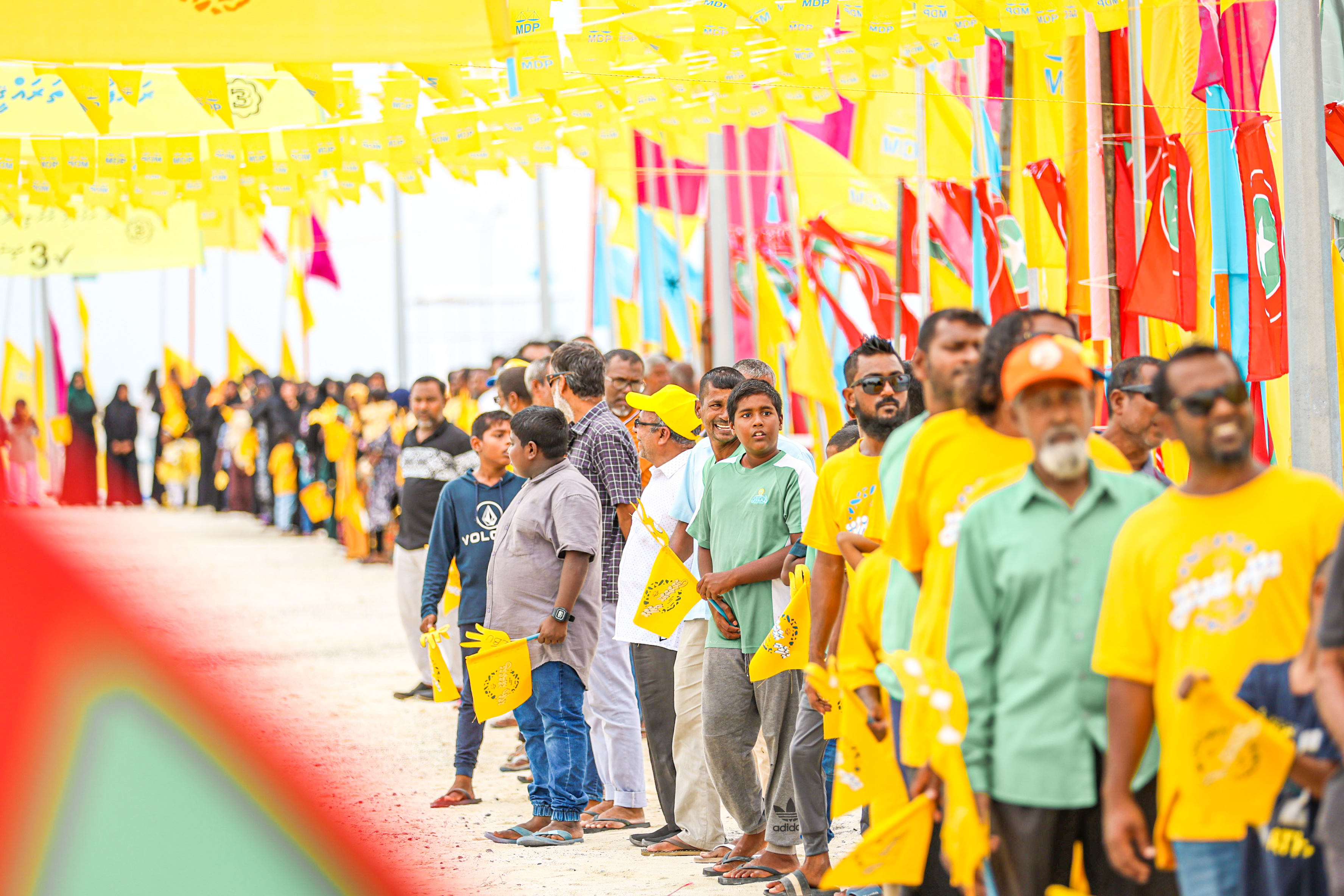 ރައީސް ނެއްލައިދުއަށް ވަޑައިގަންނަވާތީ މަރުހަބާ ކިއުމަށް ނިކުމެ ތިބި މީހުން -- ފޮޓޯ: މިރާން/ އަދަދު