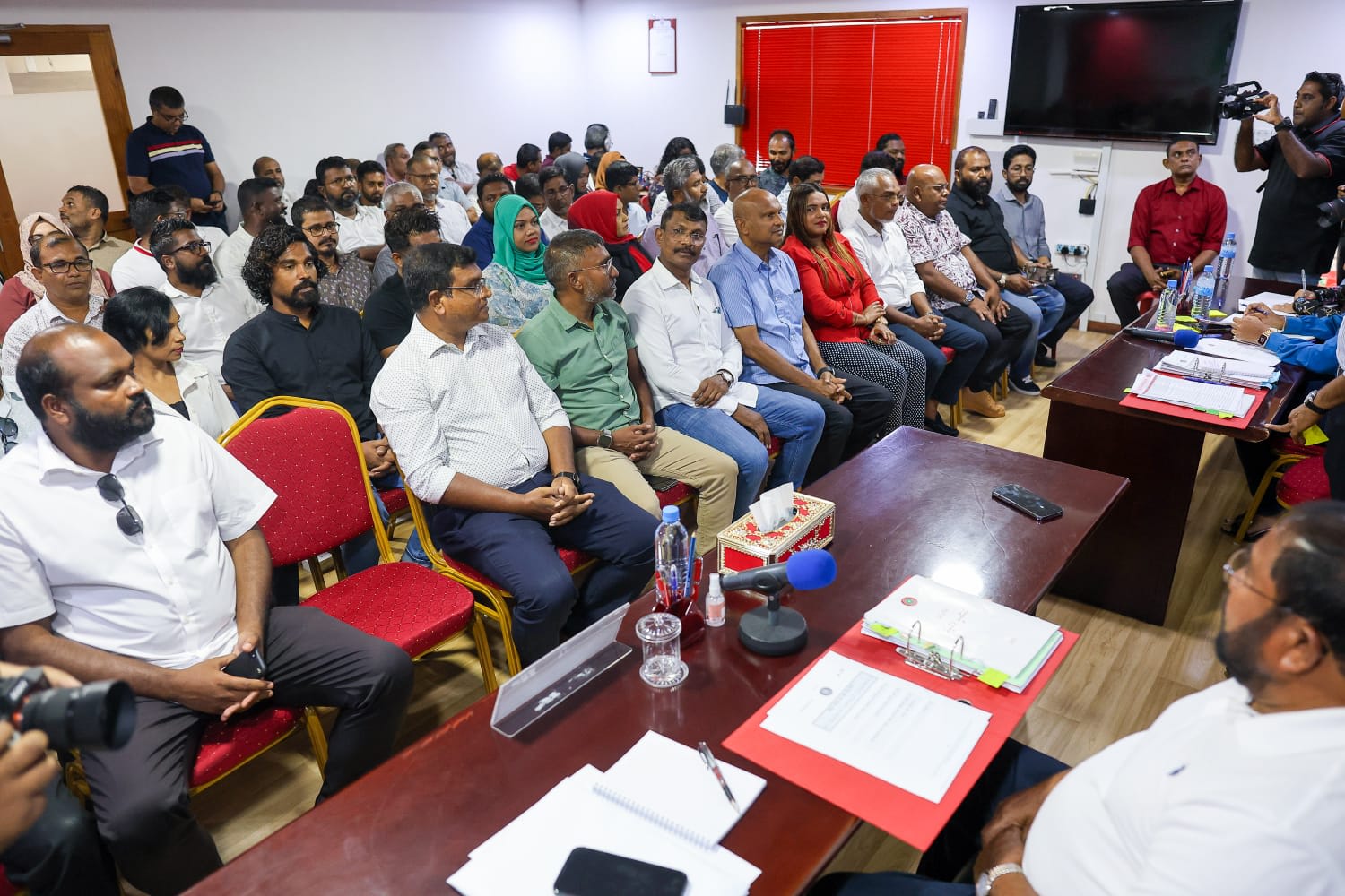 ރިޔާސީ އިންތިހާބުގެ ދެވަނަ ބުރުގައި އެކުގައި މަސައްކަތް ކުރާނެ ކެންޑިޑޭޓަކު ކަނޑައެޅުމަށް ޖޭޕީއިން ބޭއްވި ކައުންސިލް ބައްދަލުވުން - ފޮޓޯ: މުހައްމަދު ޝާބިން / އަދަދު