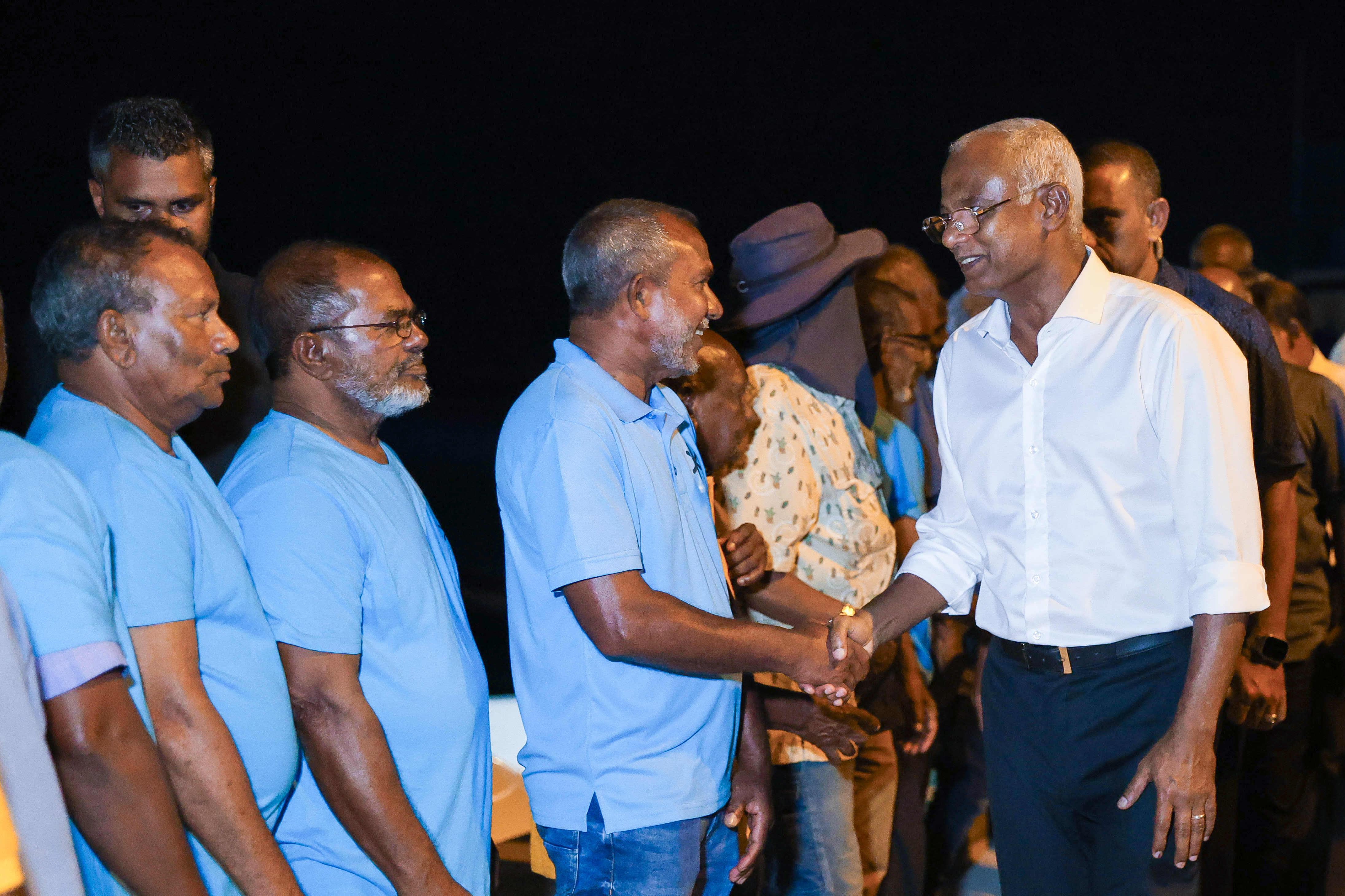 ގދ. ތިނަދޫގެ ޑިމޮކްރެޓުން ރޭ ރައީސް ސޯލިހަށް މަރުހަބާ ކިޔަން ނުކުތް. އެ މީހުން ބުނީ ދެ ވަނަ ބުރުގައި ވޯޓު ދޭނީ ރައީސް ސޯލިހަށް ކަމަށް. -- ފޮޓޯ: މުހައްމަދު ޝާބިން/ އަދަދު