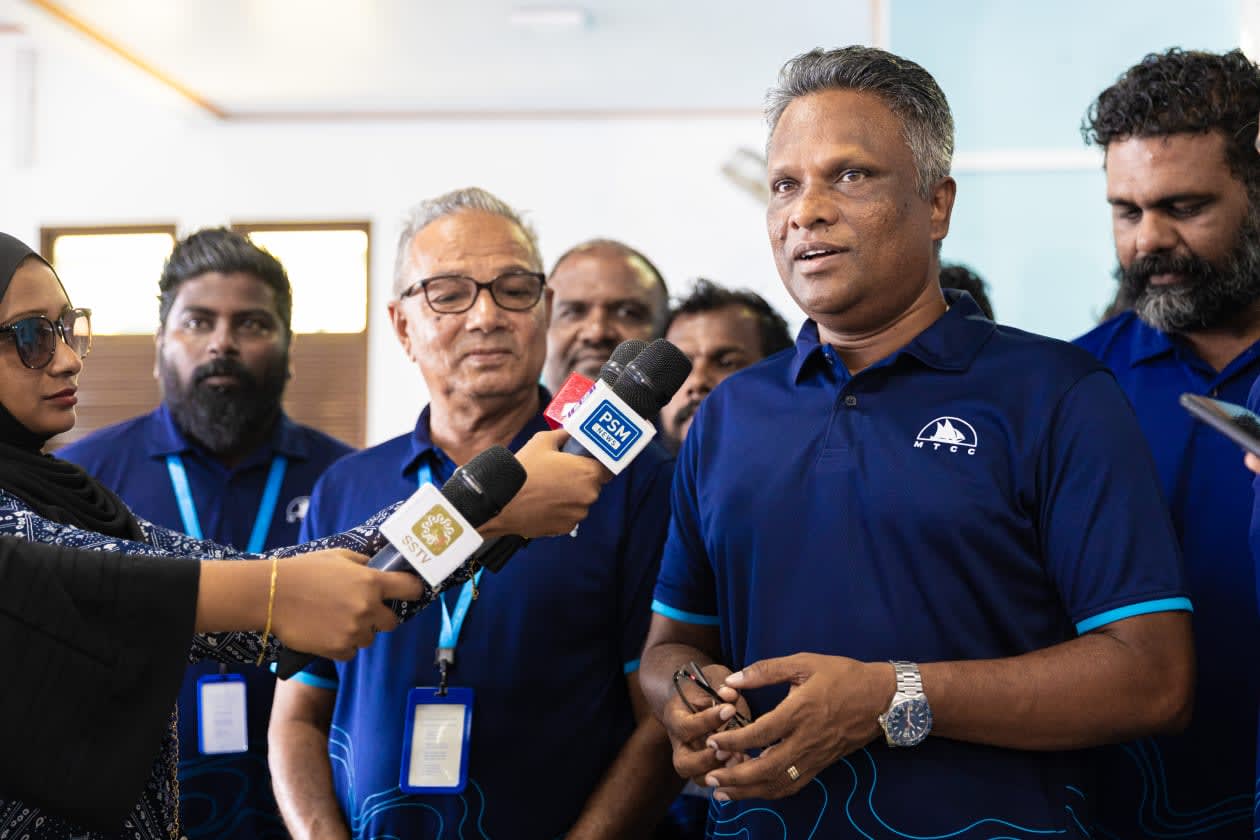 އެމްޓީސީސީގެ ސީއީއޯ އާދަމް އާޒިމް ނޫސްވެރިންނަށް މައުލޫމާތު ދެއްވަނީ -- ފޮޓޯ: އިޔާން/އަދަދު
