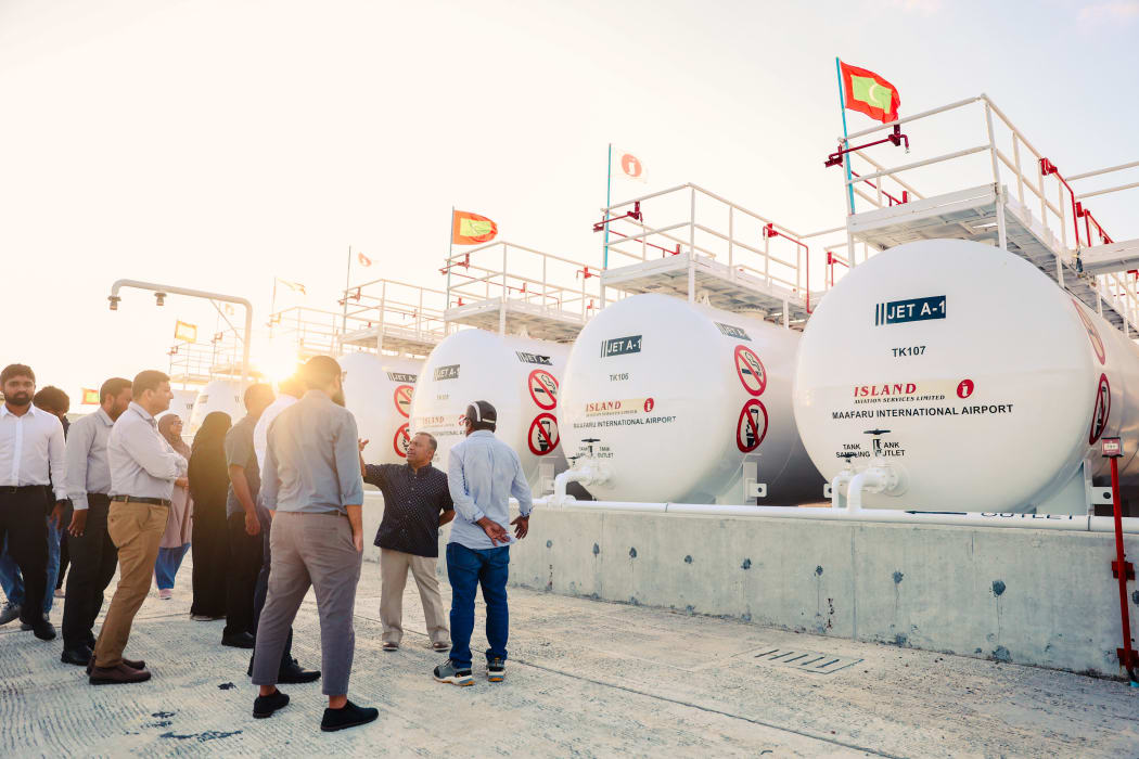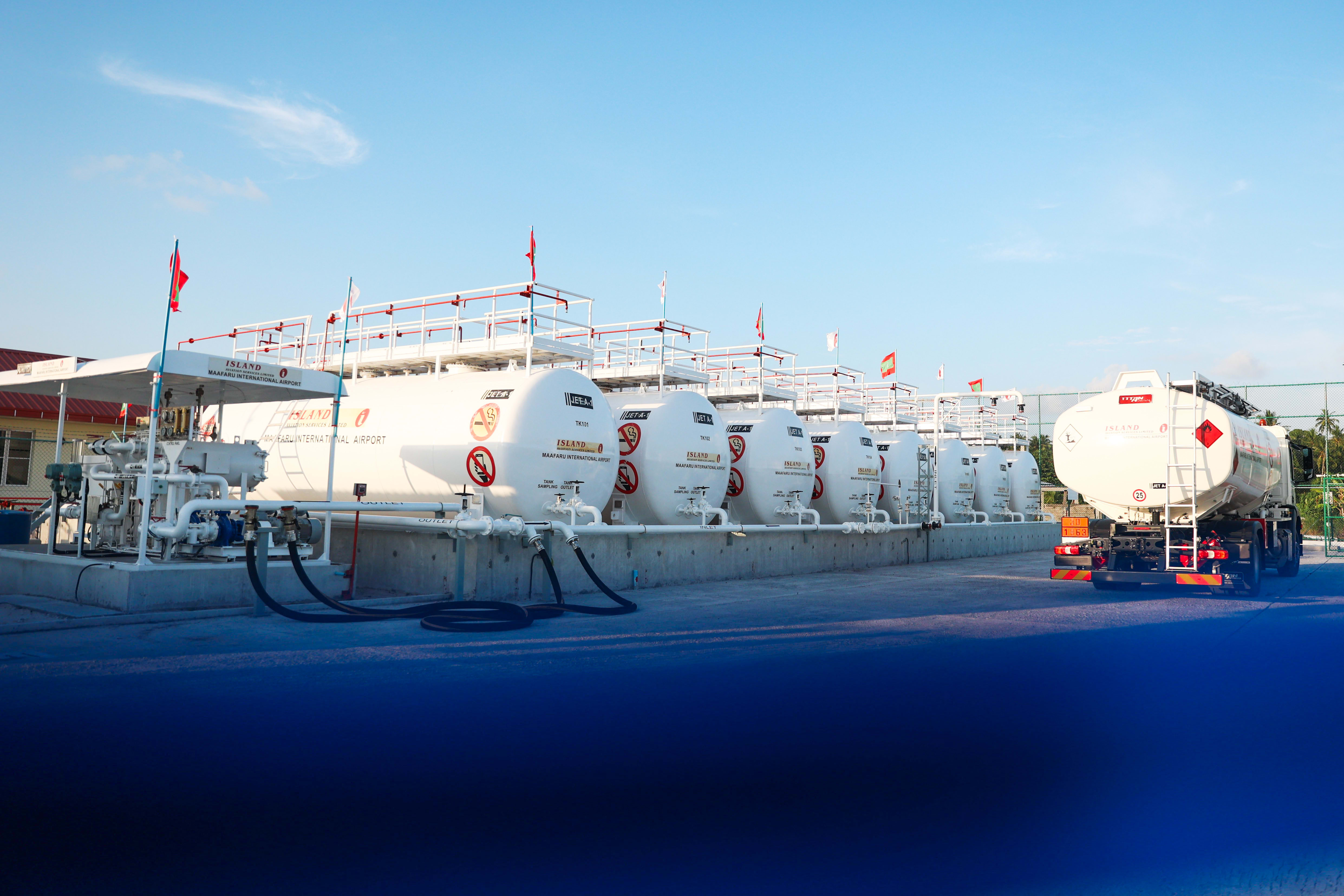 މާފަރު އެއާޕޯޓުގައި ގާއިމުކުރި އައިލެންޑް އޭވިއޭޝަންގެ ފިއުލް ފާމް، މި ތަނުގައި ހަތަރު ލައްކަ ލީޓަރުގެ ފިއުލް ރައްކާކުރެވޭ --- ފޮޓޯ: މިރާޝް ނާޝިމް/އަދަދުފިއުލް ފާމް