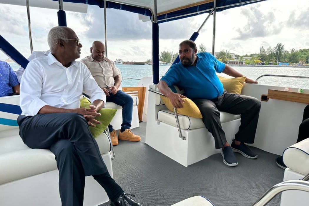 އެމްޑީޕީގެ ވަގުތީ ރައީސް އިބްރާހިމް މުހައްމަދު ސޯލިހާއި ޖޭޕީގެ ލީޑަރު ގާސިމް އިބްރާހިމް އެކުގައި ލޯންޗެއްގައި؛ މަޖިލިސް އިންތިހާބުގައި ގުޅިގެން ނުކުންނަން އެމްޑީޕީން ޝައުގުވެރިވާކަމަށް ޖޭޕީން ބުނެފި
