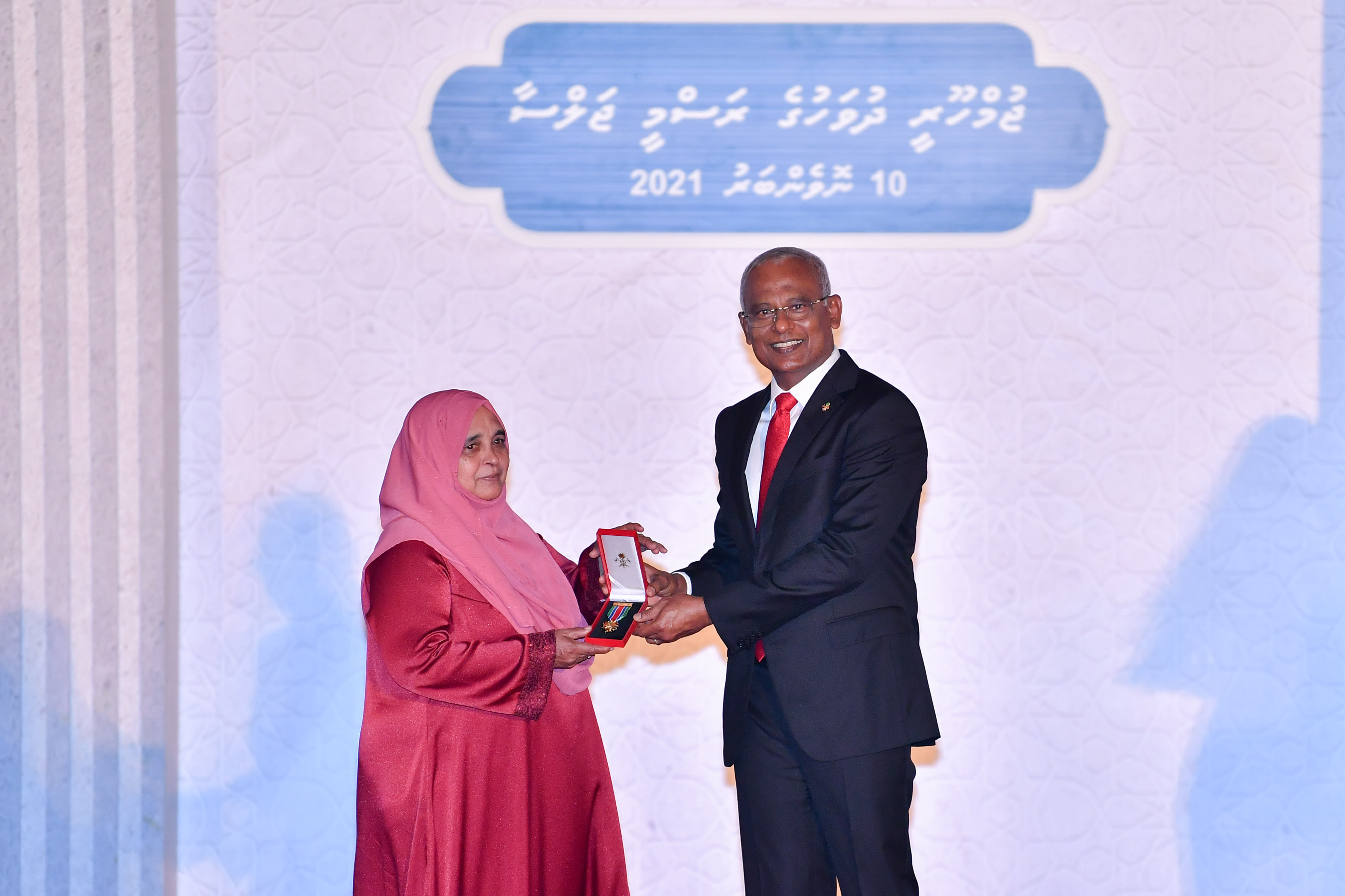 ދިވެހި ދައުލަތަށް ދިގު މުއްދަތަކަށް ހިދުމަތްކޮށްދެއްވުމުން ރައީސް ދެއްވާ ހާއްސަ އިނާމު، ކުރީގެ ރައީސް އިބްރާހިމް މުހައްމަދު ސޯލިހު ސުލްތާނާ އަށް އަރުވަނީ - ފޮޓޯ: ރައީސް އޮފީސް