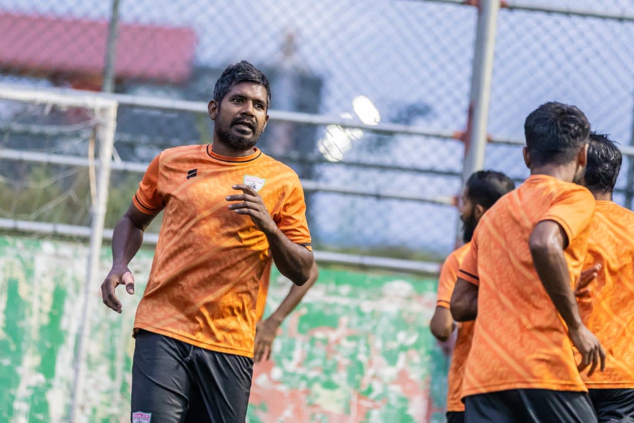 ބެންޖޯ (ކ)، ވީބީ ސްޕޯޓްސް ކްލަބްގެ ކެޕްޓަން ބޭންޑް އަޅައިގެން އޭއެފްސީ ކަޕްގެ މެޗަކަށް ނުކުންނަނީ.--- ފޮޓޯ: ވީބީ ސްޕޯޓްސް ކްލަބް