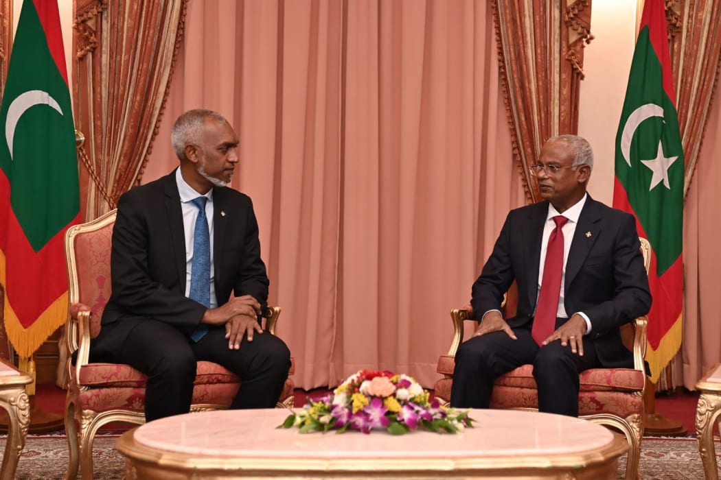 ކުރީގެ ރައީސް އިބްރާހިމް މުހައްމަދު ސޯލިހު (ކ) އަދި ރައީސް ޑރ. މުހައްމަދު މުއިއްޒު : ލީކުވީ ރައީސް ސޯލިހު މޮރިޝަސްއަށް ފޮނުވި އަސްލު ސިޓީ - ފޮޓޯ: ރައީސް އޮފީސް