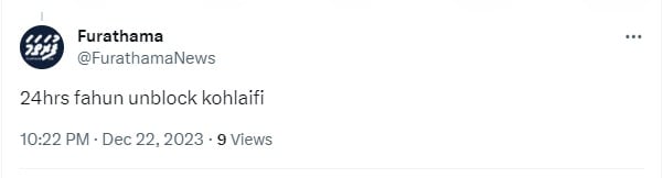 އެ ނޫހުގެ ރަސްމީ އެކްސް އެކައުންޓުން ކުރި ޕޯސްޓެއްގައި ބުނީ ވެބްސައިޓު އަންބްލޮކް ކޮށްފައިވަނީ 24 ގަޑިއިރު ފަހުން ކަމަށެވެ.