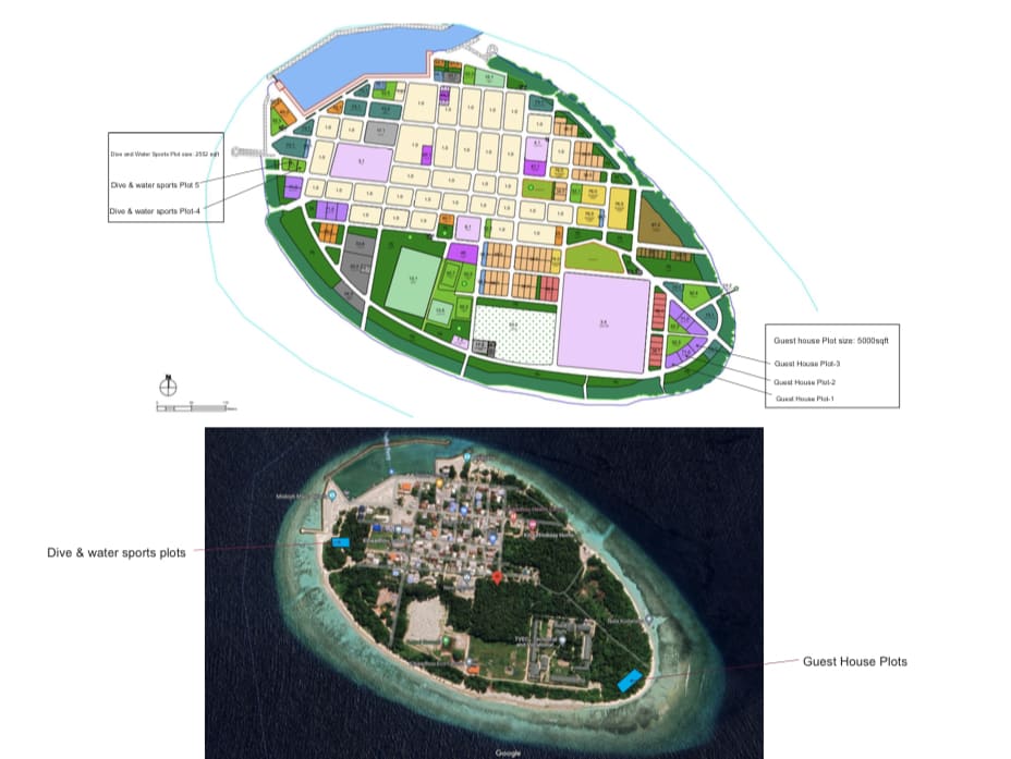 ކިހާދޫގެ ލޭންޑް ޔޫސް ޕްލޭން (ގެސްޓު ހައުސް ވިޔަފާރިއާއި ވޯޓާ ސްޕޯޓްސްއަށް ބިން ދޫކުރާ ސަރަހައްދު ފާހަގަކުރެވިފައި)