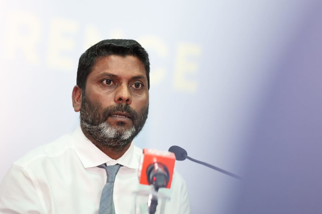 މިއަދު ބޭއްވި ނޫސްވެރިންގެ ބައްދަލުވުމުގެ ތެރެއިން މިނިސްޓަރު، ރާފިއު ވާހަކަ ދައްކަވަނީ.---- ފޮޓޯ: އަބްދުﷲ އިޔާން/ އަދަދު